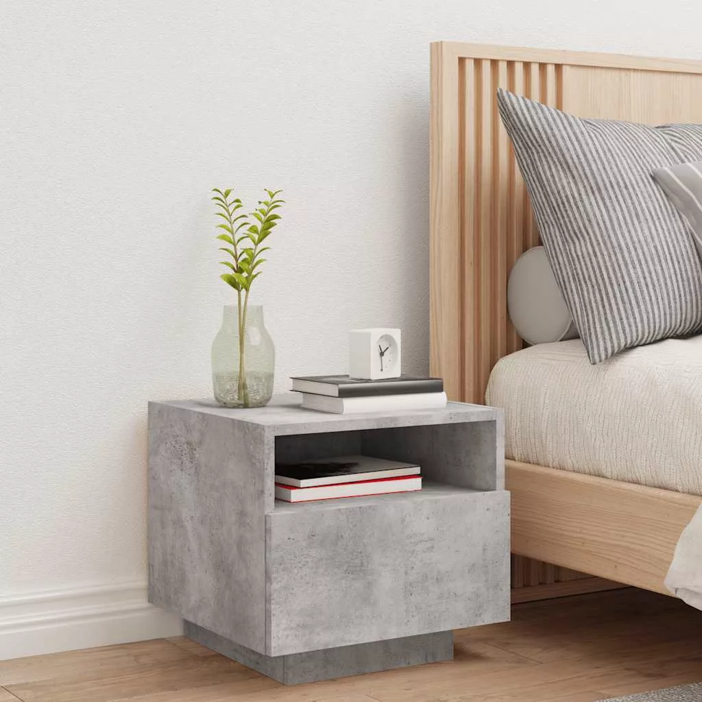 betonszürke éjjeliszekrény LED-világítással 40 x 39 x 37 cm