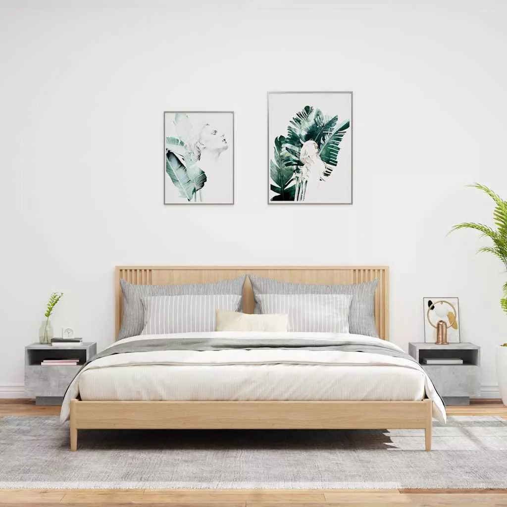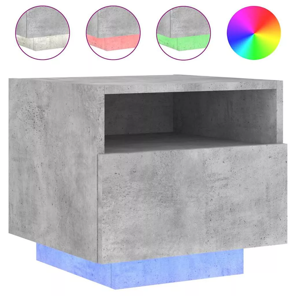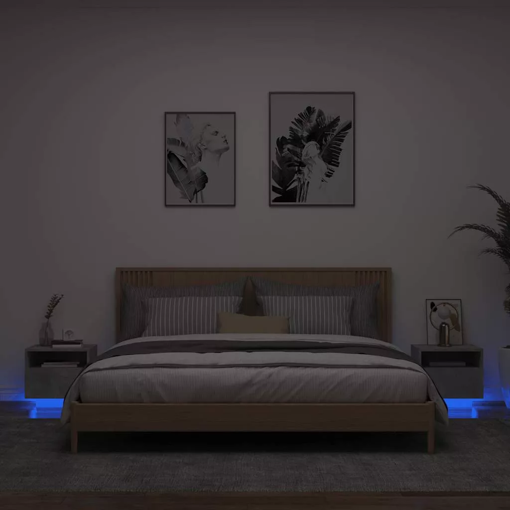 2 db betonszürke éjjeliszekrény LED-világítással 40x39x37 cm