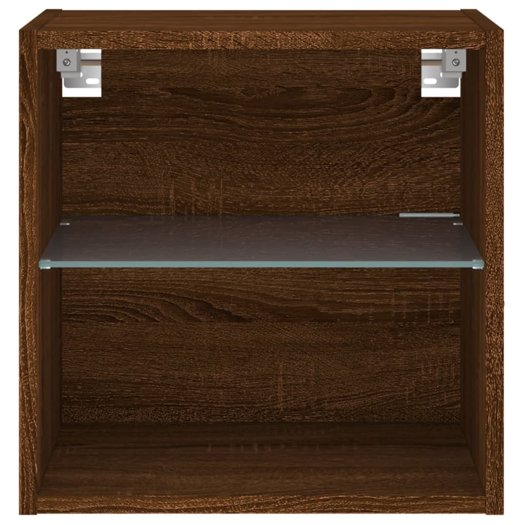 2 db barna tölgy színű fali éjjeliszekrény LED-világítással