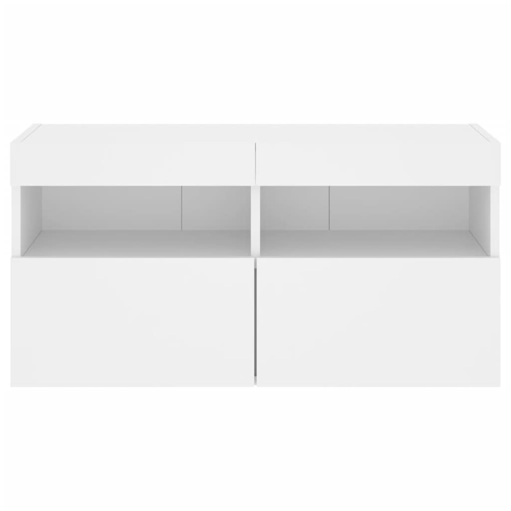 Ez a fali szekrény tökéletes az otthonába a hely maximális kihasználására és a padló tisztán tartására. Tartós anyag: A szerelt fa kivételes minőségű, sima felületű, szilárd, stabil, és ellenáll a nedvességnek.RGB LED-világítás: A falra szerelhető média-szekrény élénk RGB LED-világítással lett felszerelve. A sokféle testre szabható menü segítségével egyszerűen megváltoztathatja a világítás színét, sőt, automatikus váltakozást is beállíthat. Ezek a LED-lámpák nemcsak a lebegő TV-egység modern megjelenését, de divatosságát is növelik.Bőséges tárolóhely: A fali TV-egység bőséges helyet kínál apró tárgyak, például könyvek, DVD-k és folyóiratok rendezett és elérhető közelségben tartásához.Falra szerelhető kialakítás: Ez a LED-es szekrény falra szerelhető, így extra tárolóhelyet biztosít. Ezáltal maximalizálhatja a padlóterületet, és tisztán tarthatja a környezetét. Jó tudni:A falon belüli csavarok és dugók nem alaptartozékok. Azt tanácsoljuk, hogy keressen és használjon kifejezetten az Ön falához megfelelő csavarokat és dugókat. Ha nem biztos benne, konzultálhat egy szakemberrel. Kérjük, olvassa el és kövesse az utasítások minden lépését.A termék USB-csatlakozóval rendelkezik, amelyhez hitelesített, 5 V-os USB áramforrás szükséges (nem alaptartozék). Ne használja ezt az elemet, ha valamelyik alkatrésze eltört, elszakadt vagy hiányzik. Ez a termék DC 5V-ról működik, de a tanúsított 5V-os USB-tápforrást nem tartalmazza. A magasabb feszültség túlmelegedést okozhat, ami a készülék károsodását, valamint a túlmelegedés és a tűz esetleges kockázatát okozhatja.