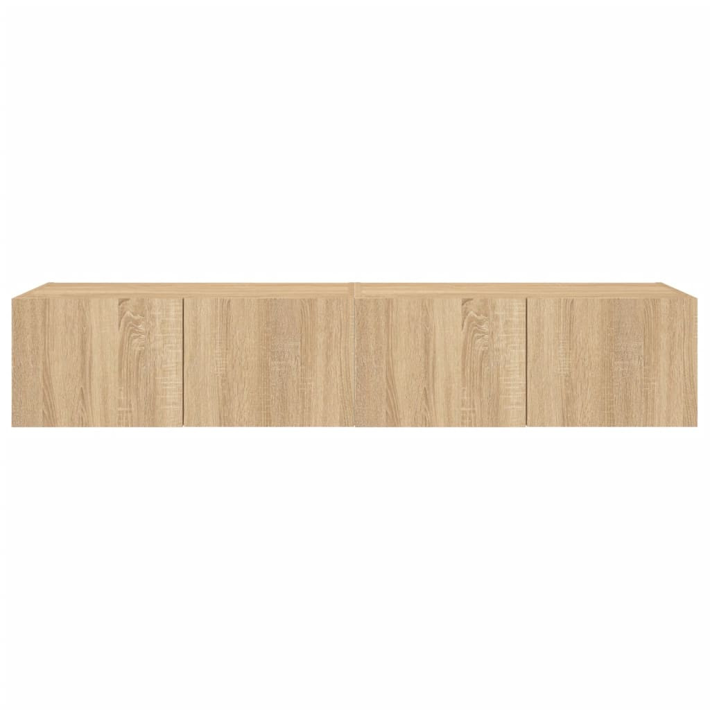 2 db sonoma tölgy színű fali TV-szekrény LED-del 80x35x31 cm