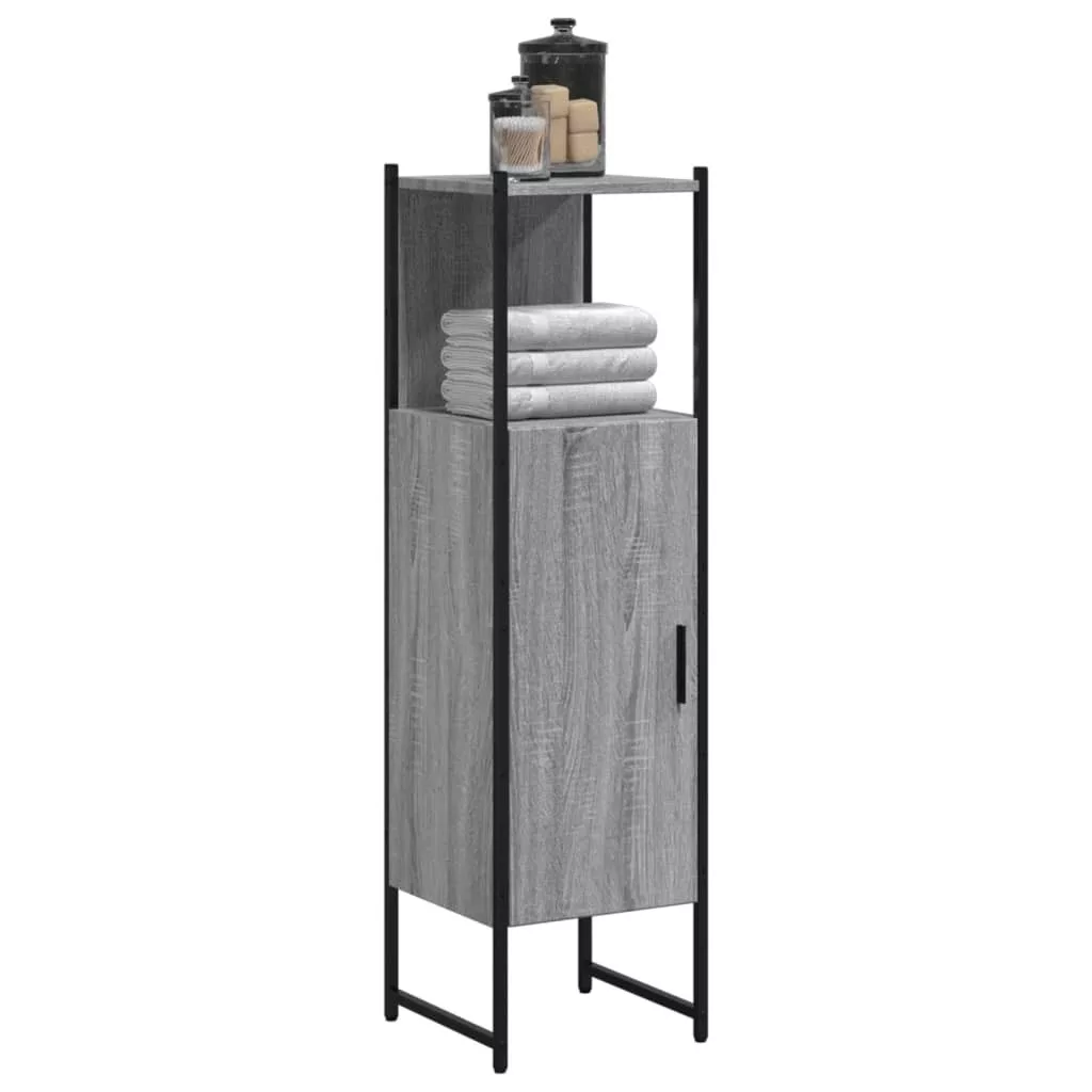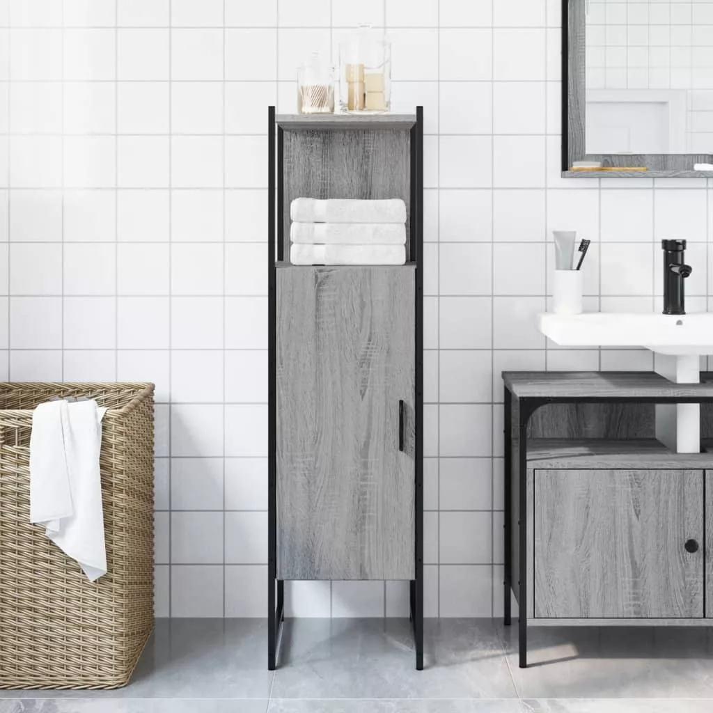 szürke sonoma színű szerelt fa fürdőszobaszekrény 33x33x120,5cm