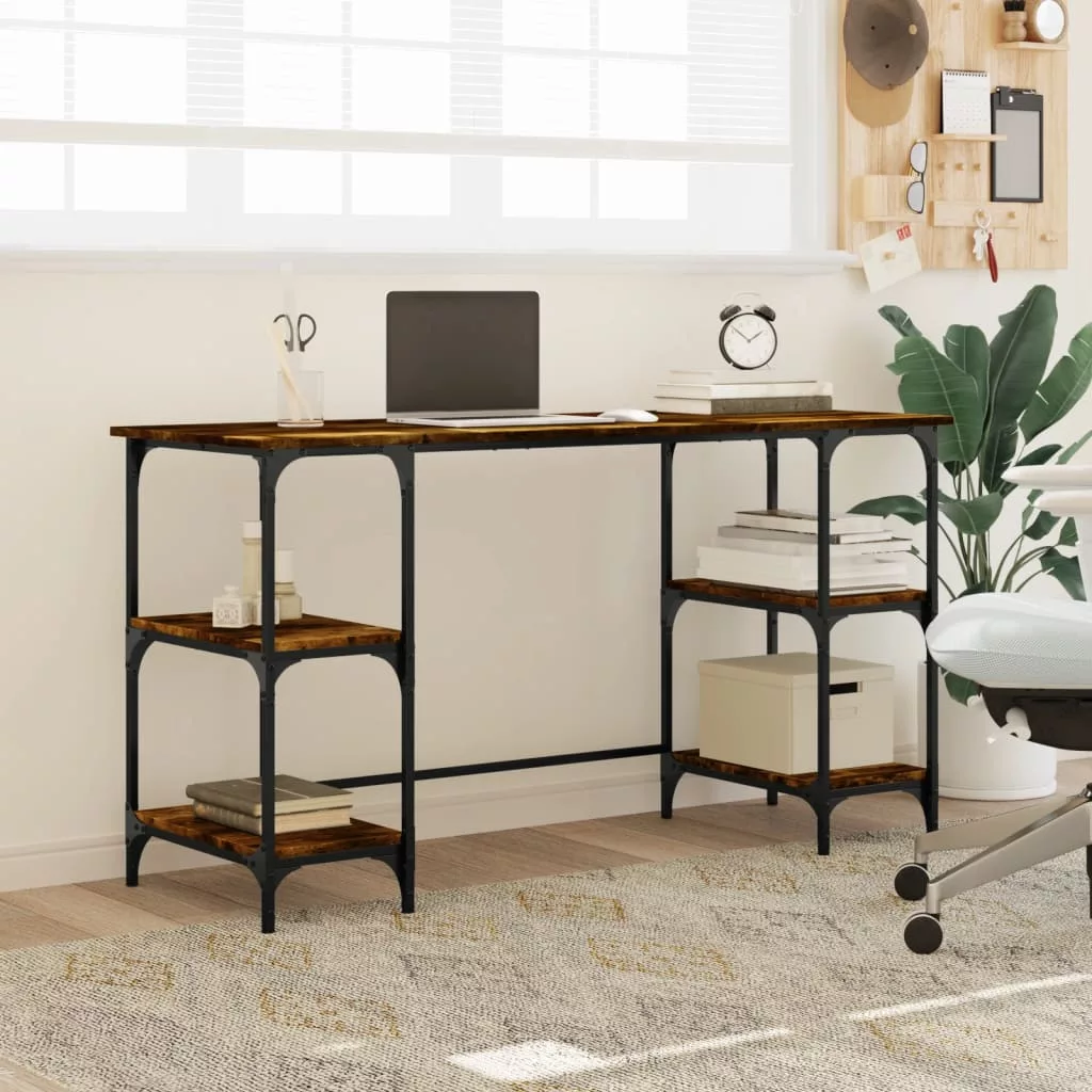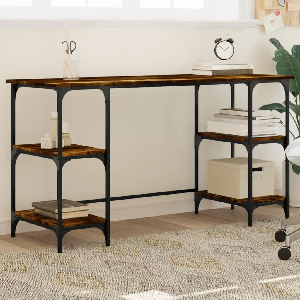 Ez a fa íróasztal otthona praktikus és dekoratív kiegészítője lesz! Tartós anyag: A szerelt fa kivételes minőségű, sima felületű, szilárd, stabil, és ellenáll a nedvességnek.Stabil váz: Az irodaasztal fémből készült váza erős szerkezetet és stabilitást biztosít.Tágas asztallap: A számítógépasztal nagy munkafelületén elhelyezheti számítógépét, írószereit és egyéb kellékeit.Rugalmas polc: A középső polcok kivehetők, így könnyebben tárolhatja számítógéptornyát, könyveit vagy egyéb irodaszereit.Állítható lábak: Az íróasztal 4 állítható lábbal rendelkezik, amelyek megvédik a padlót a karcolásoktól, és stabilan tartják az asztalt egyenetlen padlón. Figyelem:A felborulás elkerülése érdekében ezt a terméket a mellékelt fali rögzítőeszközzel kell használni.
