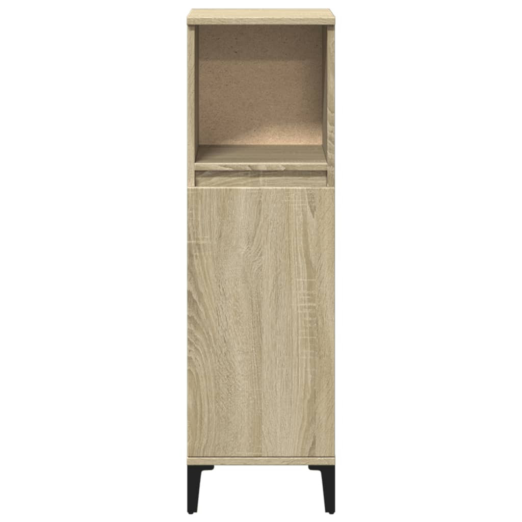 Ez a fürdőszobaszekrény nagyszerű választás fürdőszobája rendezetté varázsolásához! Tartós anyag: A szerelt fa kivételes minőségű, sima felületű, szilárd, stabil, és ellenáll a nedvességnek.Bőséges tárolóhely: A fürdőszobabútor 1 nyitott rekesszel és 2 ajtós rekesszel rendelkezik, amelyek különféle tárolási lehetőségeket és extra helyet kínálnak holmija tárolására a fürdőszobában.Fémlábak: A fémlábak szilárdságot és stabilitást biztosítanak a mosdószekrénynek.Rugalmas kialakítás: Az ajtót saját igényei szerint bal vagy jobb oldalra is beépítheti. Figyelem:A felborulás elkerülése érdekében ezt a terméket a mellékelt fali rögzítőeszközzel kell használni.