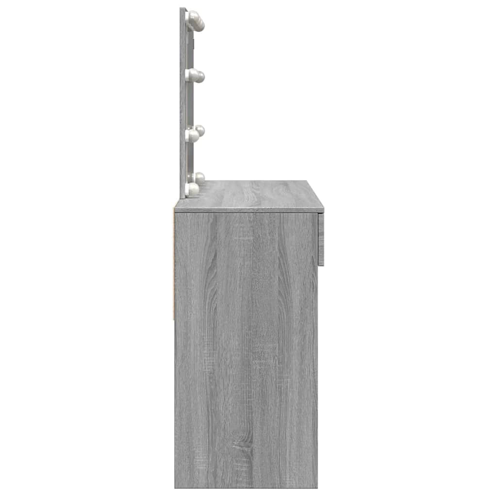 A fésülködőasztal hálószobája nagyszerű kiegészítője lesz, miközben kézközelben tarthatja kozmetikumait! Stabil és tartós anyag: A szerelt fa tartós és stabil anyag sima felülettel, amely ellenáll a nedvességnek, a vetemedésnek és a hasadásnak, így megbízható választás különféle projektekhez.Bőséges tárolóhely: A 2 fiókkal rendelkező fésülködőasztal bőséges helyet biztosít alapvető holmijai kézközelben történő rendezett tárolásához.Hasznos tükör: A gyönyörű tükör segít a sminkelésben, és elegánsabbá teszi a sminkasztalt.LED-világítás: A pipereasztal USB-s LED-izzókkal lett ellátva, amelyek egyszerűen átkapcsolhatók melegről hideg fehér fényre. A tükör körüli LED-izzók az Ön szépségét is megvilágítják. Figyelem:A felborulás elkerülése érdekében ezt a terméket a mellékelt fali rögzítőeszközzel kell használni.