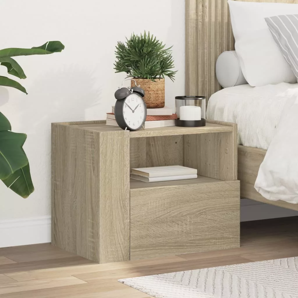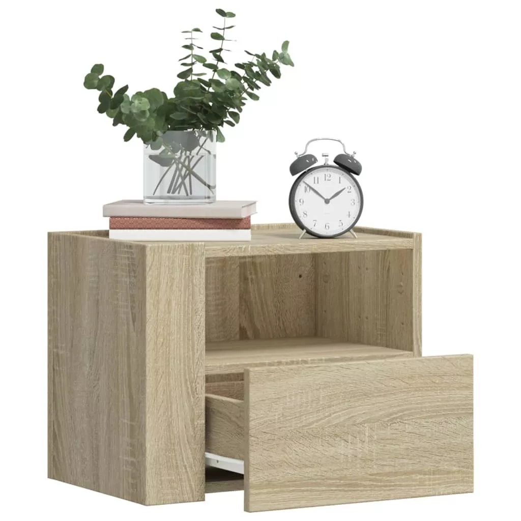 Ez az elegáns, falra szerelhető éjjeliszekrény jól fog illeni hálószobájába vagy nappalijába, és időtlen bájt csempész otthonába. Robusztus és stabil váz: A szerelt fa kivételes minőségű, sima felületű, erős, stabil, és nedvességálló.Bőséges tárolóhely: A falra szerelhető éjjeliszekrény kényelmes fiókkal rendelkezik, így kéznél tarthatja a legfontosabb dolgait.Kétféle összeszerelési mód: A két sarokpanelt felszerelheti ugyanarra vagy ellentétes oldalra úgy, hogy az előlapok előre kerülnek, vagy az egyiket az elejére, a másikat pedig a hátuljára helyezi.Falra szerelhető kialakítás: Falra szerelhető, így extra tárolóhelyet biztosít. Ezáltal maximalizálhatja a padlóterületet, és tisztán tarthatja a környezetét.Stabil és robusztus asztallap: A falra szerelhető éjjeliszekrény teteje tökéletes dísztárgyak, képkeretek, és cserepes növények elhelyezésére. Jó tudni:A falon belüli csavarok és dugók nem alaptartozékok. Azt tanácsoljuk, hogy keressen és használjon kifejezetten az Ön falához megfelelő csavarokat és dugókat. Ha nem biztos benne, konzultálhat egy szakemberrel. Kérjük, olvassa el és kövesse az utasítások minden lépését.