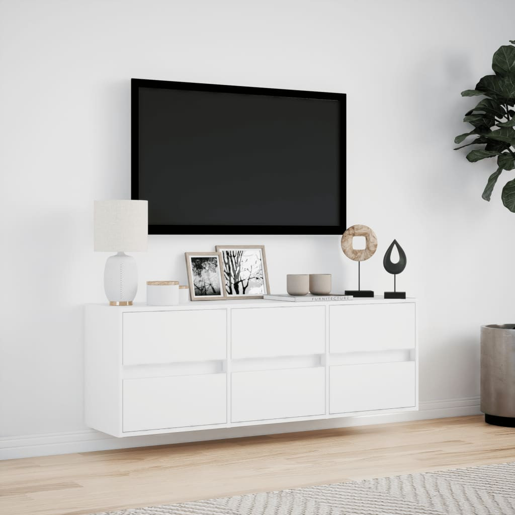 Ez a fali szekrény tökéletes az otthonába a hely maximális kihasználására és a padló tisztán tartására.Stabil és tartós anyag: A szerelt fa tartós és stabil anyag sima felülettel, amely ellenáll a nedvességnek, a vetemedésnek és a hasadásnak, így megbízható választás különféle projektekhez.RGB LED-világítás a kellemes környezet érdekében: A szekrény LED-lámpái egyszerűen állíthatók, így személyre szabott világítást hozhat létre. Testre szabhatja a módokat, a színeket és a fényerőt, hogy fokozza a helyiség hangulatát.Bőséges tárolóhely: Ez a TV-állvány 6 fiókkal, amelyek bőséges helyet biztosítanak a mindennap használatos tárgyak, például könyvek, DVD-k, magazinok, média kellékek, és egyebek tárolására, rendezett és könnyen elérhető helyen.Helytakarékos: A falra szerelhető kialakítás maximalizálja a kihasználatlan falterületet, kompakt és hatékony tárolórésszé alakítva.DIY kialakítás: A lebegő TV-szekrény végtelen tervezési lehetőséget kínál, lehetővé téve, hogy önmagában használja, vagy más fali TV-egységekkel kombinálva komplett szórakoztató központot hozva létre.Jó tudni:A falon belüli csavarok és dugók nem alaptartozékok. Azt tanácsoljuk, hogy keressen és használjon kifejezetten az Ön falához megfelelő csavarokat és dugókat. Ha nem biztos benne, konzultálhat egy szakemberrel. Kérjük, olvassa el és kövesse az utasítások minden lépését.A termék USB-csatlakozóval rendelkezik, amelyhez hitelesített, 5 V-os USB áramforrás szükséges (nem alaptartozék). Fontos: A telepítést pontosan ezeknek az utasításoknak megfelelően kell elvégezni – ellenkező esetben helytelen telepítés esetén biztonsági kockázat léphet fel. Rendszeresen ellenőrizze, hogy a rögzítések biztonságosan vannak-e karbantartva. A magas tárgyak stabilitását befolyásolhatja a vastag szőnyeg vagy az egyenetlen padló. A termékhez falrögzítő eszközt mellékeltek; azonban Önnek kell beszereznie a fal típusának megfelelő rögzítőelemeket. Fúrjon lyukakat csak akkor, ha előtte ellenőrizte, hogy nincsenek elektromos vezetékek vagy vízvezetékek a falban (ha bizonytalan, kérjen tanácsot egy szakképzett szakembertől). Helyi barkácsboltjában beszerezheti a szükséges fúrókat és rögzítőelemeket, és kérhet tanácsot is. Ha kétségei vannak, kérjen szakképzett szakember segítségét a termék telepítéséhez és rögzítéséhez. Kérjük, csak hitelesített DC 5V bemenetet használjon. A magasabb feszültség túlmelegedést okozhat, ami a készülék károsodásához és tűzveszélyhez vezethet. Ne csatlakoztassa ezt a terméket más áramforráshoz, mint amit a kézikönyv, a névtábla vagy a vidaXL kifejezetten ajánlott. Ezt a készüléket nem használhatják 14 év alatti gyermekek, valamint csökkent fizikai, érzékszervi vagy mentális képességekkel rendelkező személyek, illetve akiknek nincs tapasztalatuk vagy ismeretük az elektronikus készülékek használatával kapcsolatban. Az áram veszélyes. A készülék sérülése, helytelen telepítése, használata vagy módosítása (az egyes alkatrészek cseréje) áramütést és veszélyt okozhat. Ne használja ezt a terméket robbanásveszélyes környezetben, például gyúlékony folyadékok, gázok vagy por jelenlétében, illetve 50 Celsius-fok feletti hőmérsékleten. Ne kapcsolja be a terméket, ha a csatlakozókábel vagy a tápegység láthatóan sérült. Ha ennek a lámpatestnek a külső hajlékony kábele vagy vezetéke megsérült, kizárólag a gyártó, a gyártó szervizügynöke vagy megfelelő képesítéssel rendelkező személy cserélheti ki a veszély elkerülése érdekében. Kapcsolja ki az áramot a telepítés és karbantartás során. Győződjön meg arról, hogy az izzók lehűltek. Ennek a lámpatestnek a fényforrása nem cserélhető; amikor a fényforrás élettartama lejár, az egész lámpatestet ki kell cserélni. Csak beltéri használatra, ne használja a terméket kültéren.
