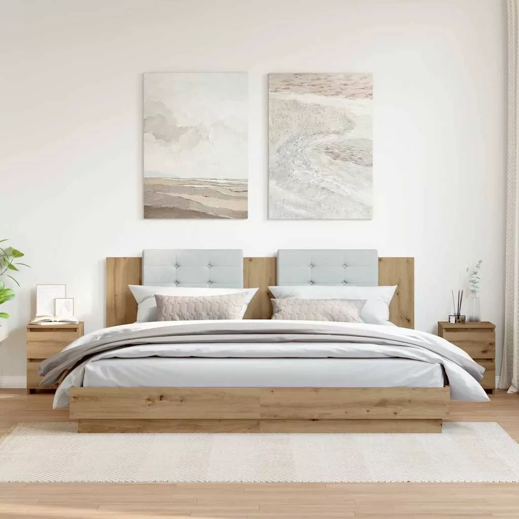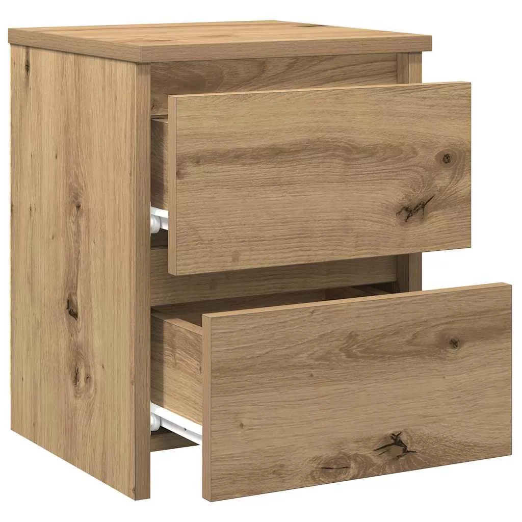 2 db kézműves tölgy színű szerelt fa éjjeliszekrény 30x30x40 cm