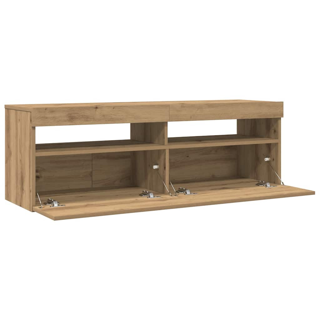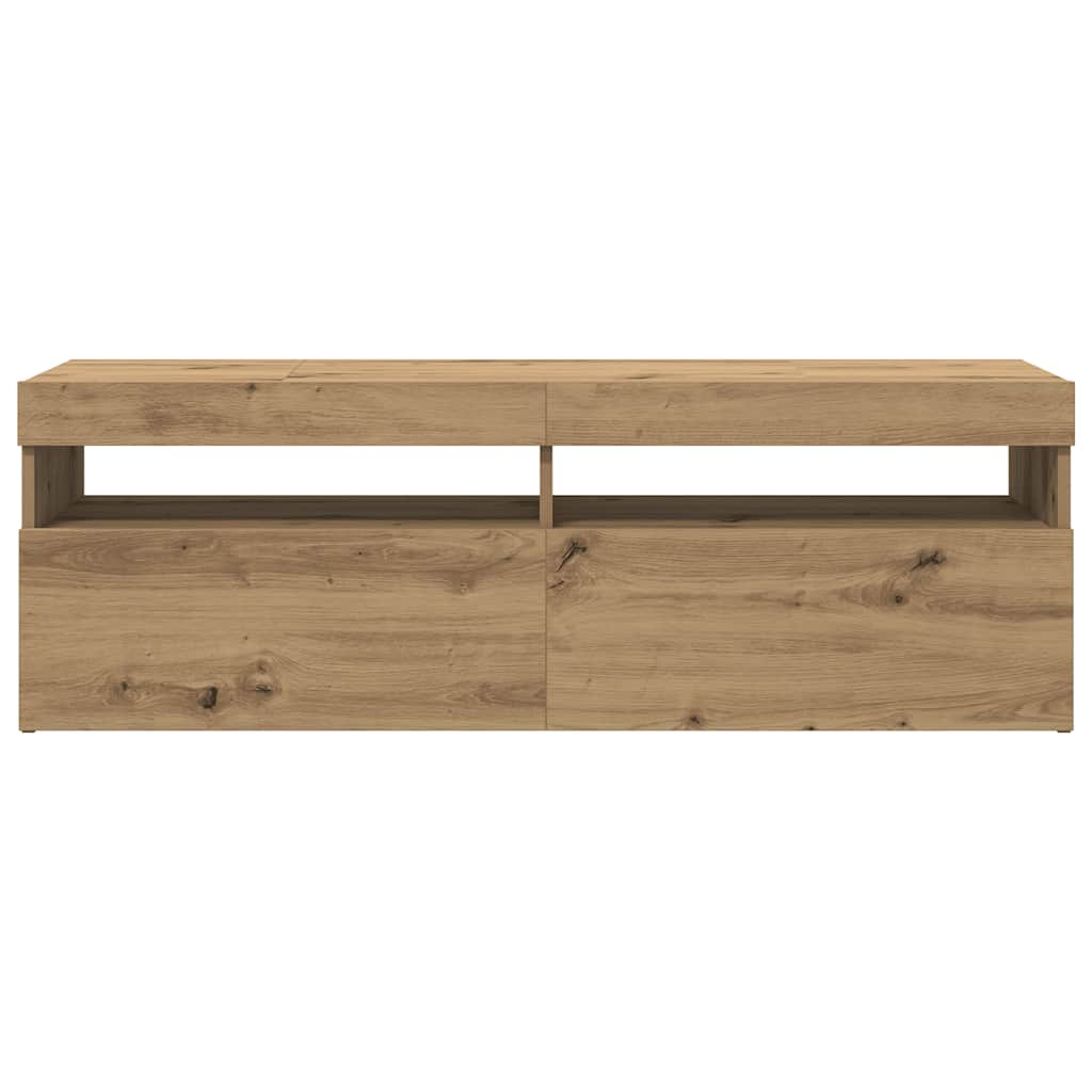 kézműves tölgy szerelt fa TV-szekrény LED-ekkel 120x35x40 cm