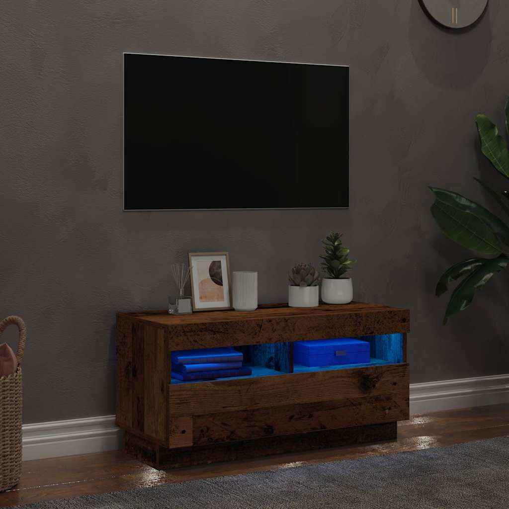antik fa színű szerelt fa TV-szekrény LED-ekkel 80x35x40 cm
