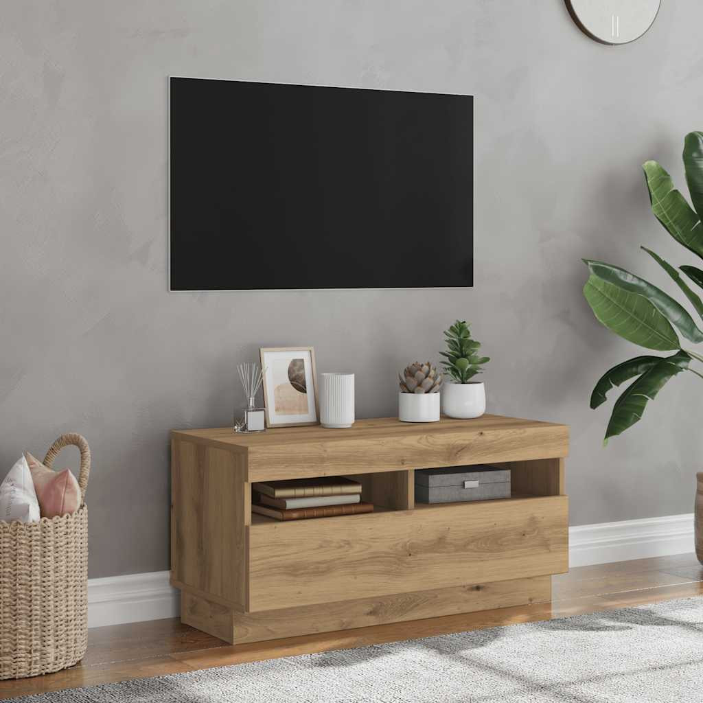 kézműves tölgyszínű szerelt fa TV-szekrény LED-ekkel 80x35x40cm
