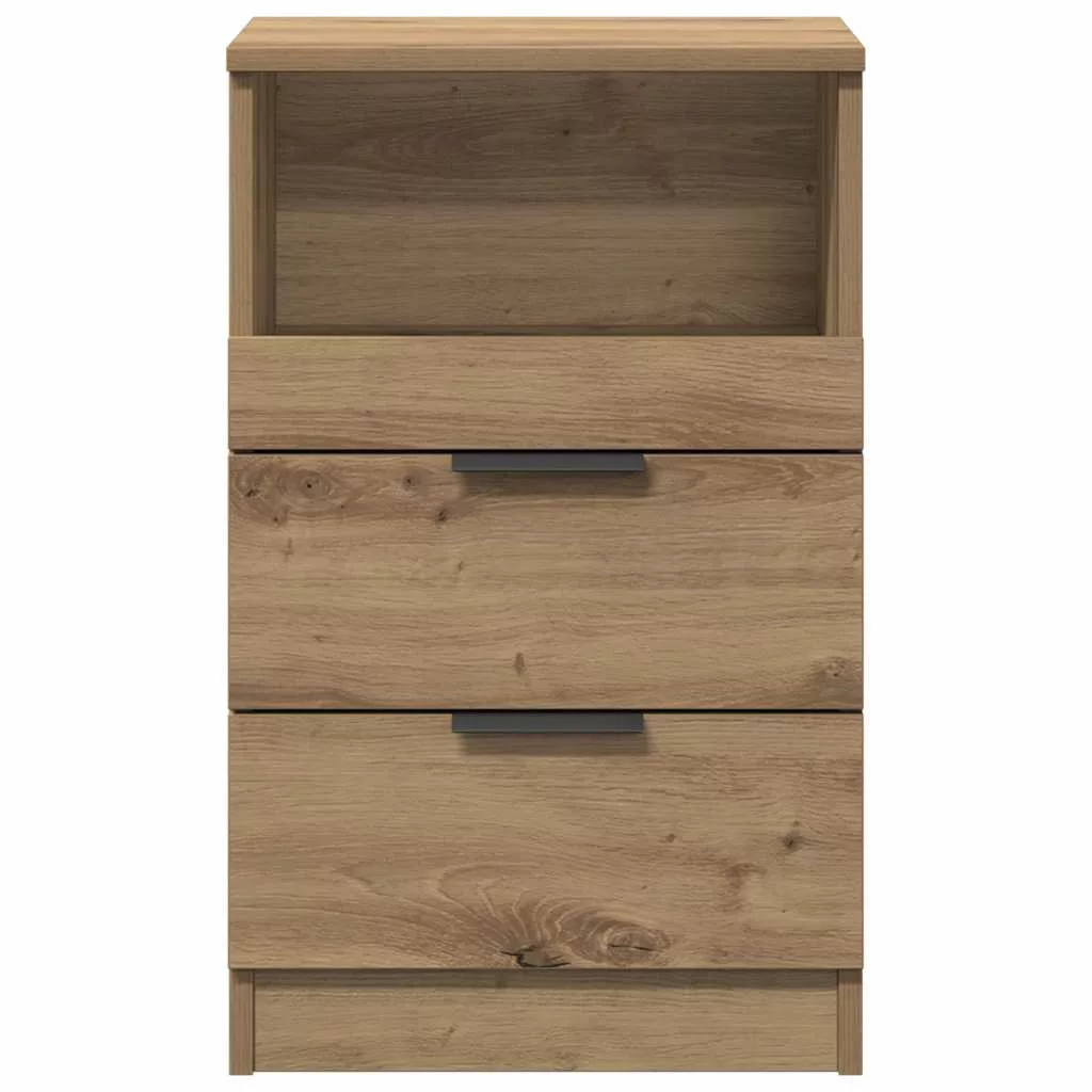 Ez az elegáns kialakítású éjjeliszekrény otthona időtálló kiegészítője. Stabil és tartós anyag: A szerelt fa tartós és stabil anyag sima felülettel, amely ellenáll a nedvességnek, a vetemedésnek és a hasadásnak, így megbízható választás különféle célokhoz.Bőséges tárolóhely: A 2 fiókkal és 1 rekesszel rendelkező éjjeliszekrény bőséges helyet biztosít magazinjai, könyvei, távirányítói és egyéb apró tárgyai kézközelben történő rendezett tárolásához.Stabil lap: Stabil lapjára dísztárgyakat, például képkereteket és cserepes növényeket is helyezhet.Könnyen karbantartható: Sima felületének köszönhetően a szekrény nedves ruhával könnyen tisztítható, és kevesebb gondozást igényel. Figyelem:A felborulás elkerülése érdekében ezt a terméket a mellékelt fali rögzítőeszközzel kell használni.