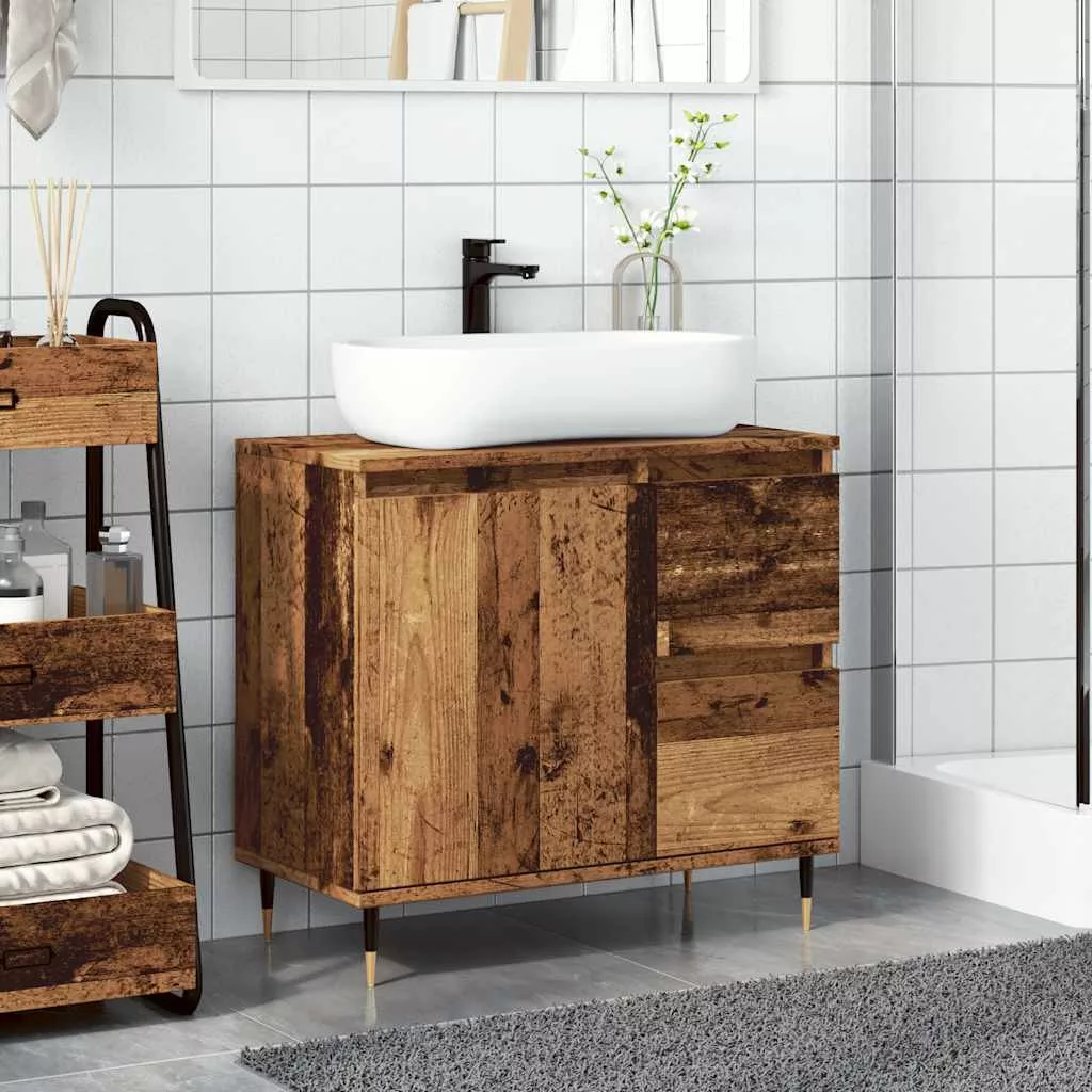 antik fa színű szerelt fa fürdőszobaszekrény 65 x 33 x 60 cm