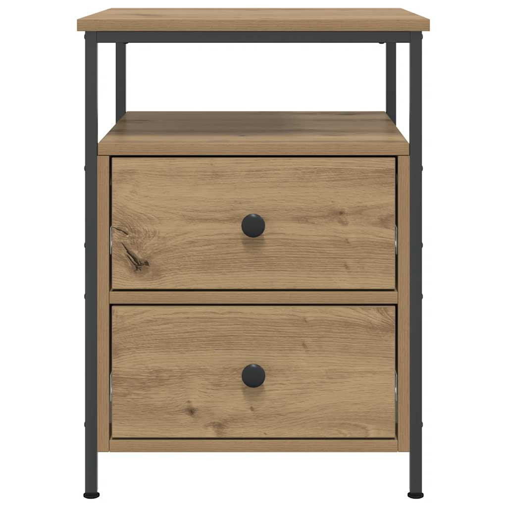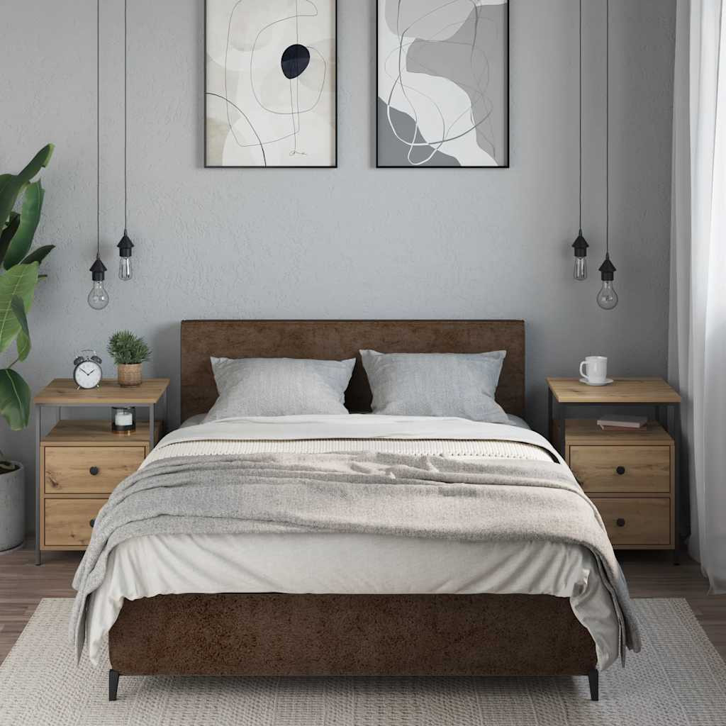 2 db kézműves tölgy színű szerelt fa éjjeliszekrény 44x45x60 cm