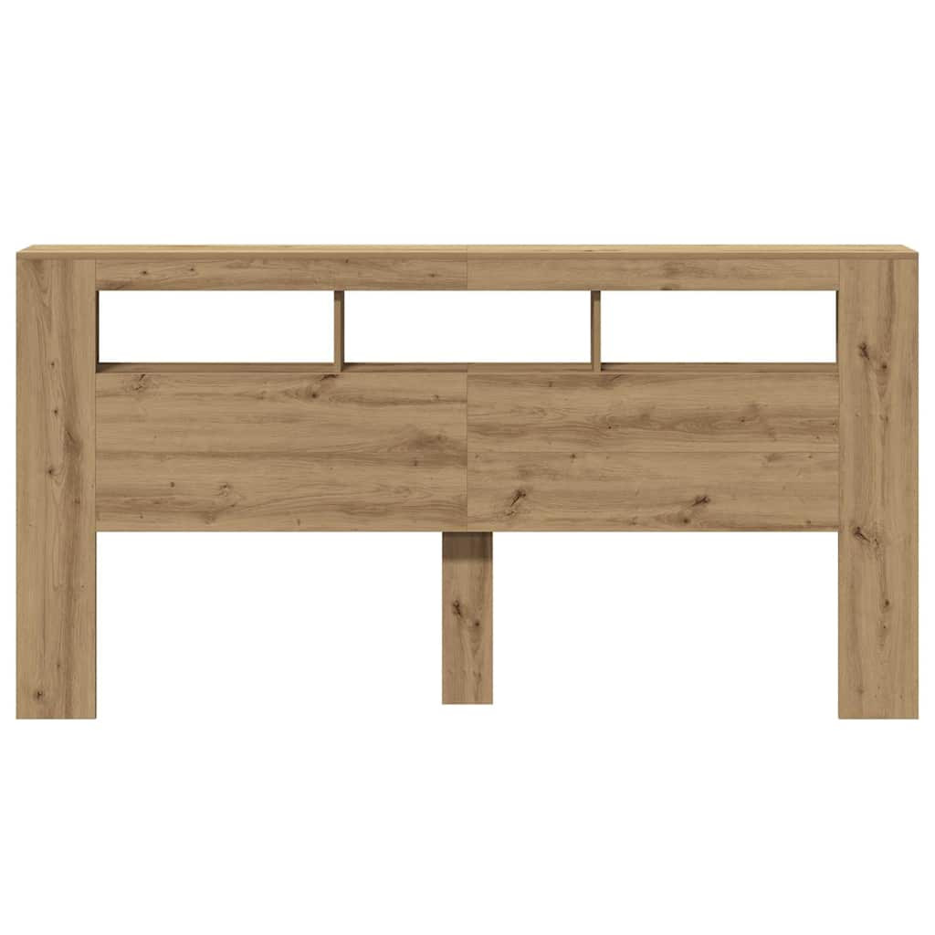 kézműves tölgyszínű szerelt fa LED-es fejtámla 200x18,5x103,5cm