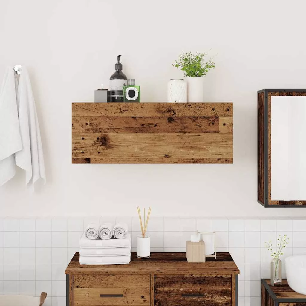 antik fa színű szerelt fa fali fürdőszobaszekrény 80x25x30 cm