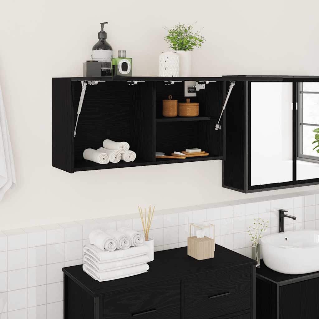 fekete szerelt fa fali fürdőszobaszekrény 80x25x40 cm