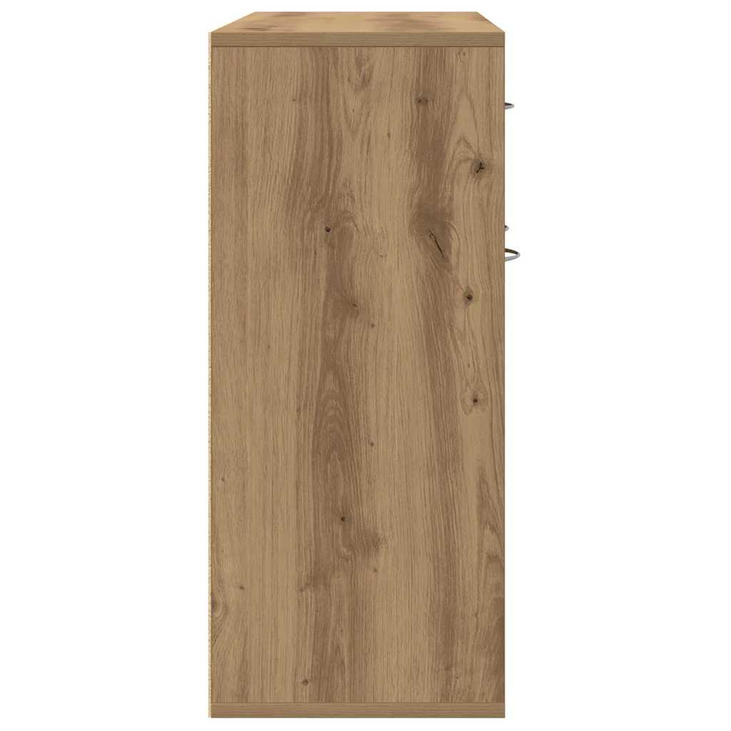 Ez a minimalista stílusú tálalószekrény otthona praktikus és rendkívül dekoratív kiegészítője lesz! Stabil és tartós anyag: A szerelt fa tartós és stabil anyag sima felülettel, amely ellenáll a nedvességnek, a vetemedésnek és a hasadásnak, így megbízható választás különféle célokhoz.Bőséges tárolóhely: A szekrény bőséges helyet kínál az étkezőkellékek és egyéb háztartási cikkek kézközelben történő rendezett tárolásához.Robusztus asztallap: A tárolószekrény masszív asztallappal rendelkezik, amelyre dísztárgyakat, fotóalbumokat, vagy kis növényeket helyezhet.Gyakorlati fogantyúk: Az oldalsó szekrény fogantyúkkal van ellátva, amelyek kényelmes fogást biztosítanak, így könnyedén nyithatja és zárhatja a szekrényt, miközben extra szépséget adnak hozzá.Könnyen karbantartható: Sima felületének köszönhetően a szekrény nedves ruhával könnyen tisztítható, és kevesebb gondozást igényel. Figyelem: A felborulás elkerülése érdekében ezt a terméket a mellékelt fali rögzítőeszközzel kell használni.