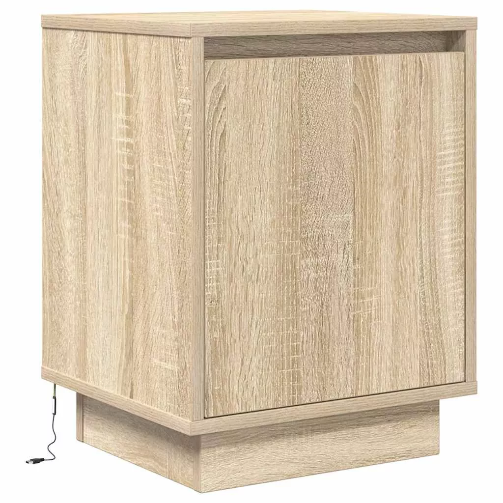 sonoma tölgy színű éjjeliszekrény LED-ekkel 38x34x50 cm