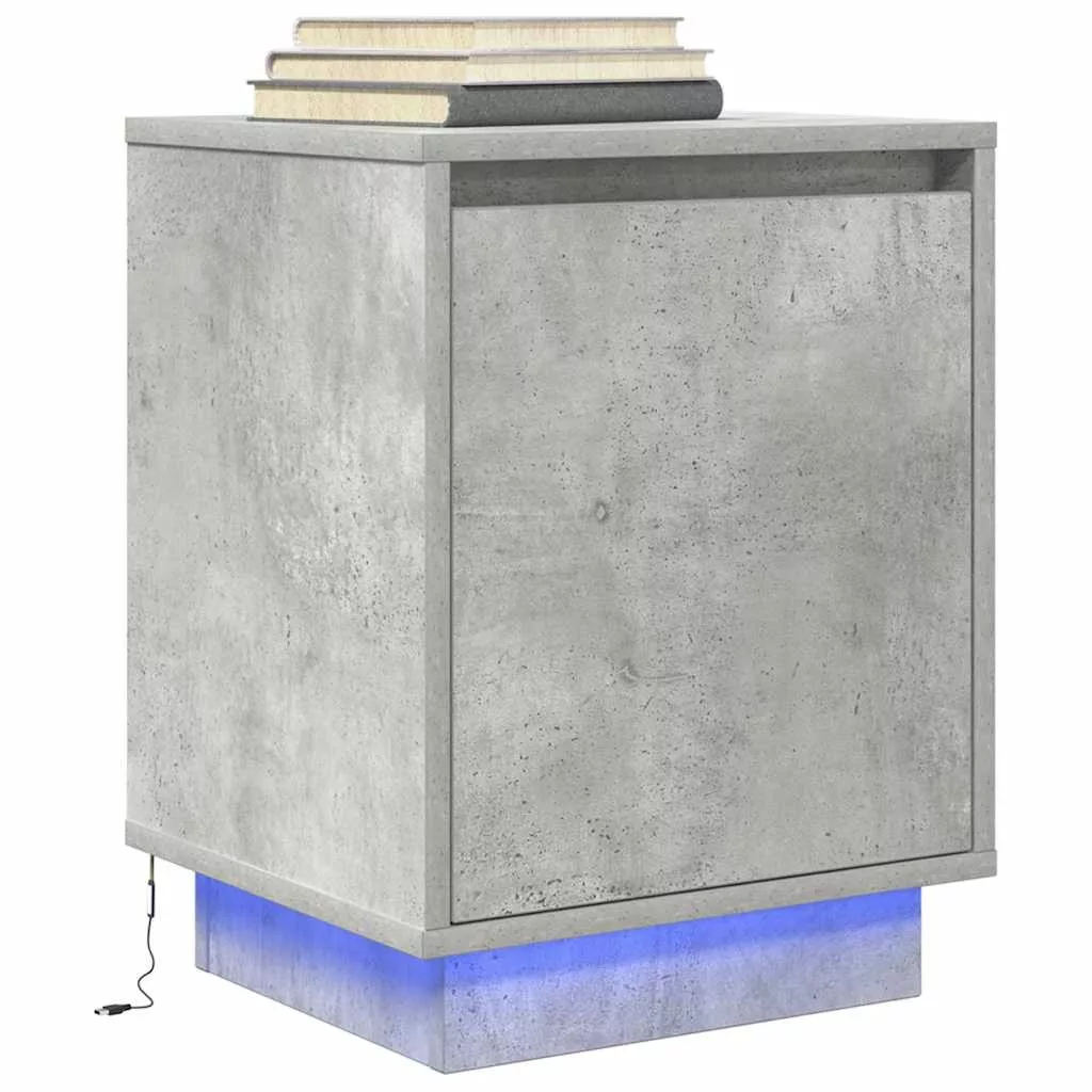 betonszürke éjjeliszekrény LED-világítással 38x34x50 cm
