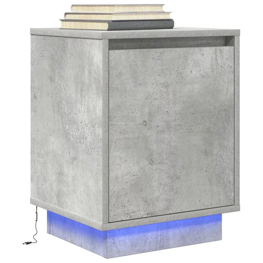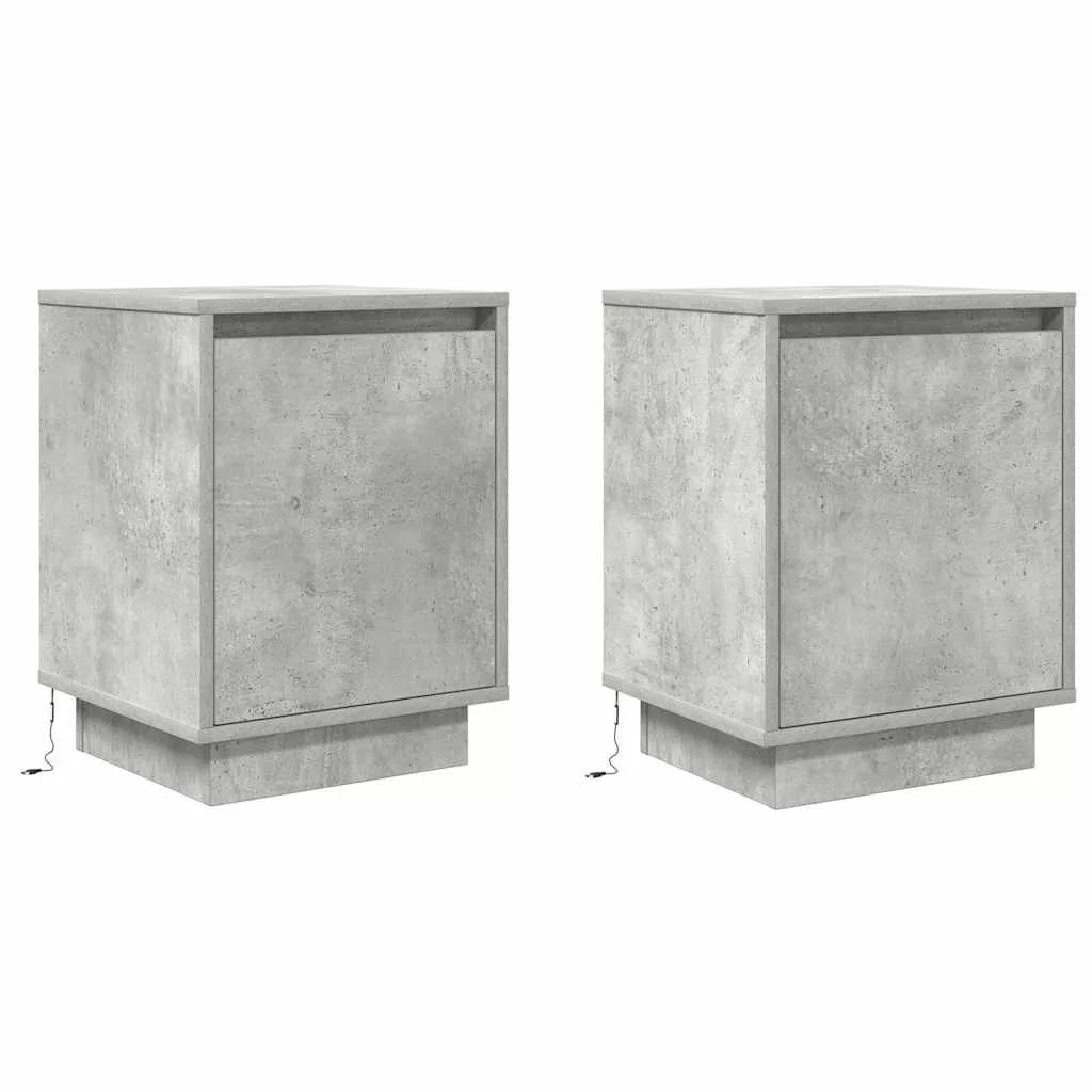 2 db betonszürke éjjeliszekrény LED-fényekkel 38x34x50 cm