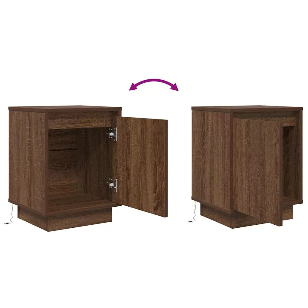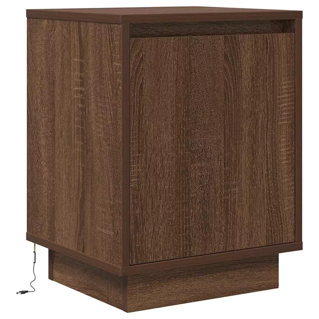 barna tölgyszínű éjjeliszekrény LED-világítással 38x34x50 cm