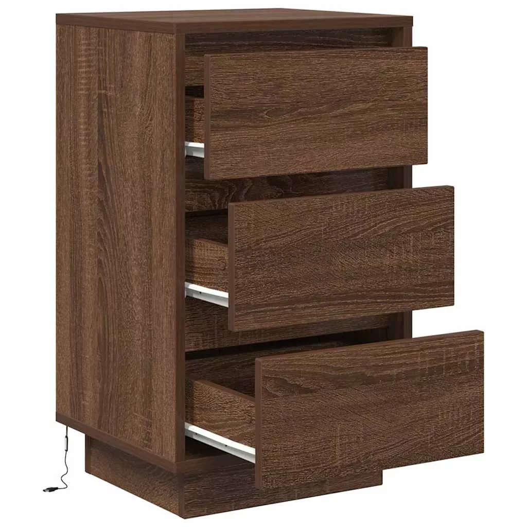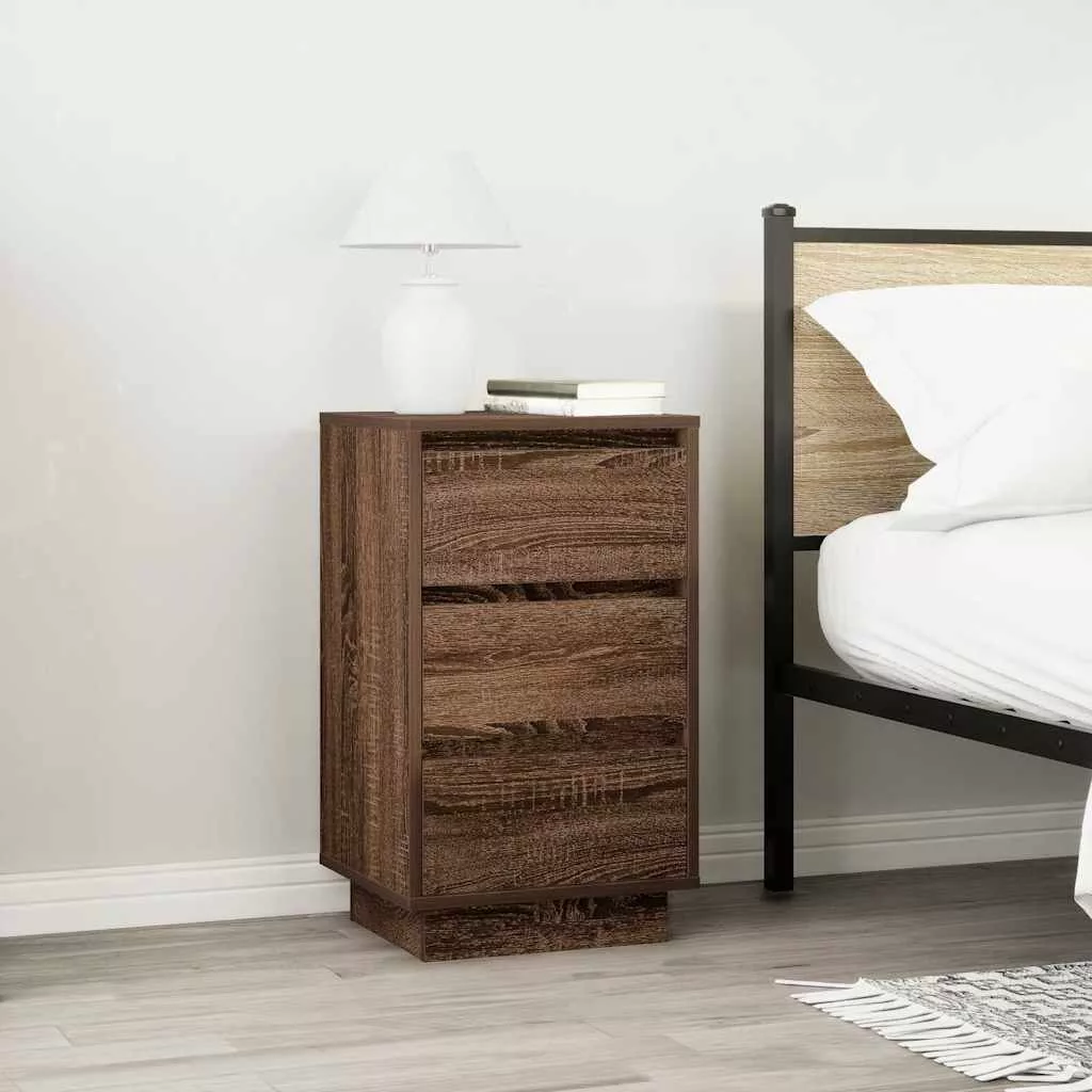 barna tölgyszínű éjjeliszekrény LED-világítással 38x34x65 cm