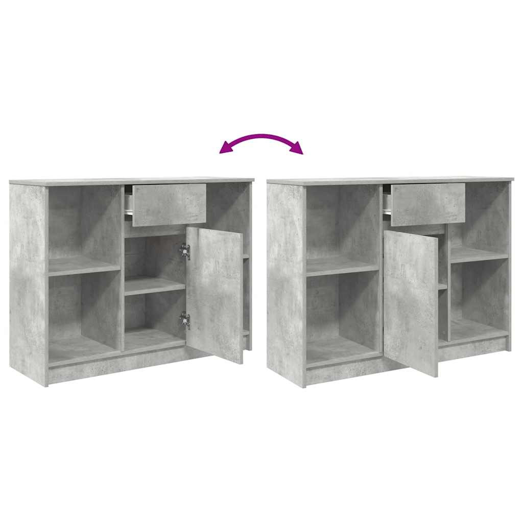betonszürke szerelt fa tálalószekrény fiókos 101x35x76 cm