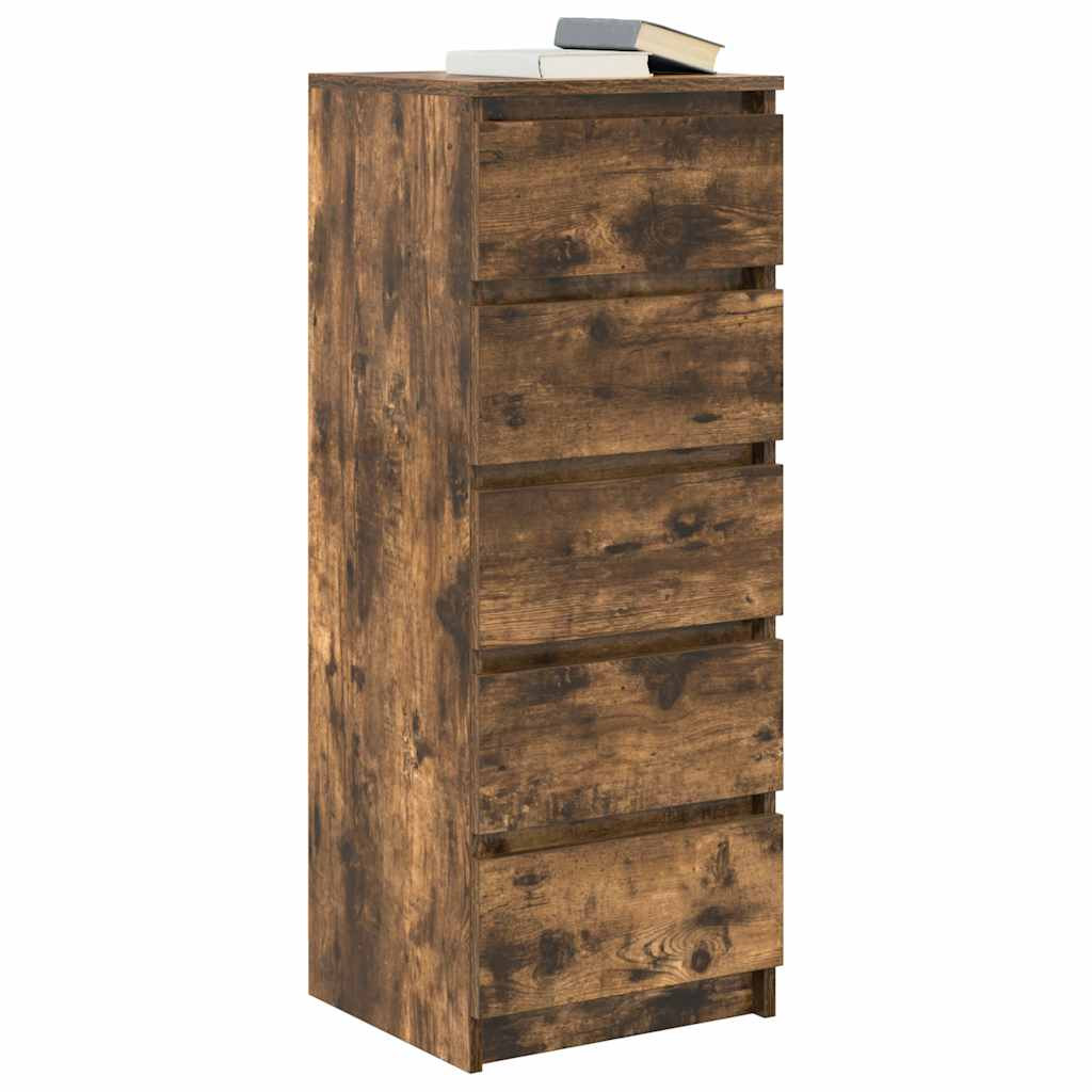 füstölt tölgy szerelt fa tálalószekrény fiókos 37,5x35x99 cm