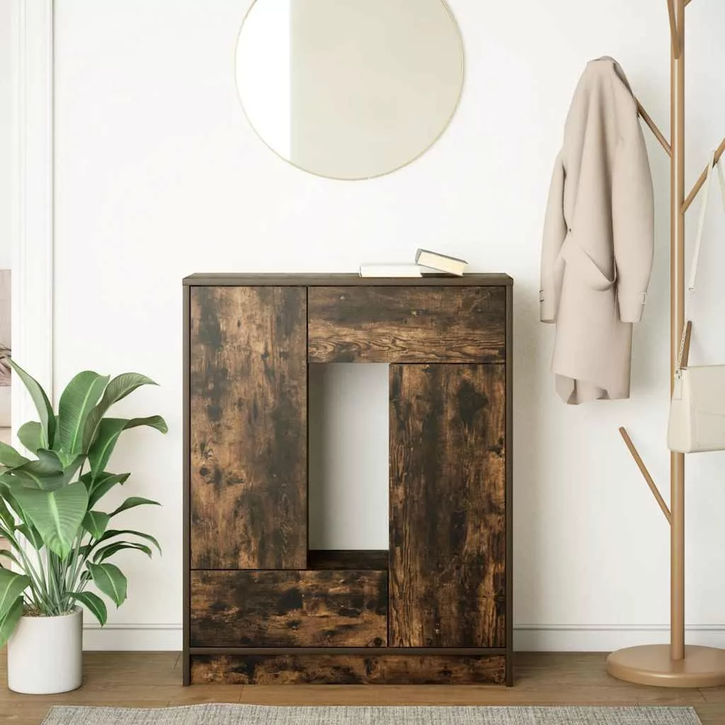 A komód sokoldalú tárolási megoldásokat kínál, rendet és szervezettséget teremt, miközben praktikus és esztétikus megjelenést kölcsönöz a lakótérnek. Stabil és tartós anyag: A szerelt fa tartós és stabil anyag sima felülettel, amely ellenáll a nedvességnek, a vetemedésnek és a hasadásnak, így megbízható választás különféle célokhoz.Bőséges tárolóhely: A büfé szekrény ajtókkal és fiókokkal rendelkezik, így biztosítva, hogy a tárgyak jól szervezettek és rendezettek legyenek. A szekrény ajtajai zárt tárolóhelyet kínálnak, hogy megvédjék a holmiját, és ne legyenek szem előtt, míg a fiókok további helyet biztosítanak a különböző tárgyakhoz való könnyű hozzáférés érdekében.Stabil felső felület: A robusztus asztallap megbízható felületet biztosít a legfontosabb dolgok kéznél tartásához, így ideális a mindennapi használatra. Akár képkereteket, dekorációs tárgyakat vagy tálalóedényeket szeretne megjeleníteni, tartóssága biztosítja, hogy könnyedén megbirkózzon a különböző feladatokkal.Sokoldalú használat: A stílusos kialakítású előszobaszekrény bármely helyiségbe tökéletesen illik: stílusos tárolási megoldásként szolgál a nappaliban, funkcionális kiegészítője az étkezőnek, vagy praktikus szervező a bejáratnál. Alkalmazkodó kialakítása különböző stílusokat egészít ki, így kiváló választás a helyiségek feldobására és rendbetételére.Könnyen gondozható: Sima felületének köszönhetően a tálalószekrény nedves ruhával könnyen tisztítható, és kevesebb gondozást igényel. Figyelem:A felborulás elkerülése érdekében ezt a terméket a mellékelt fali rögzítőeszközzel kell használni.
