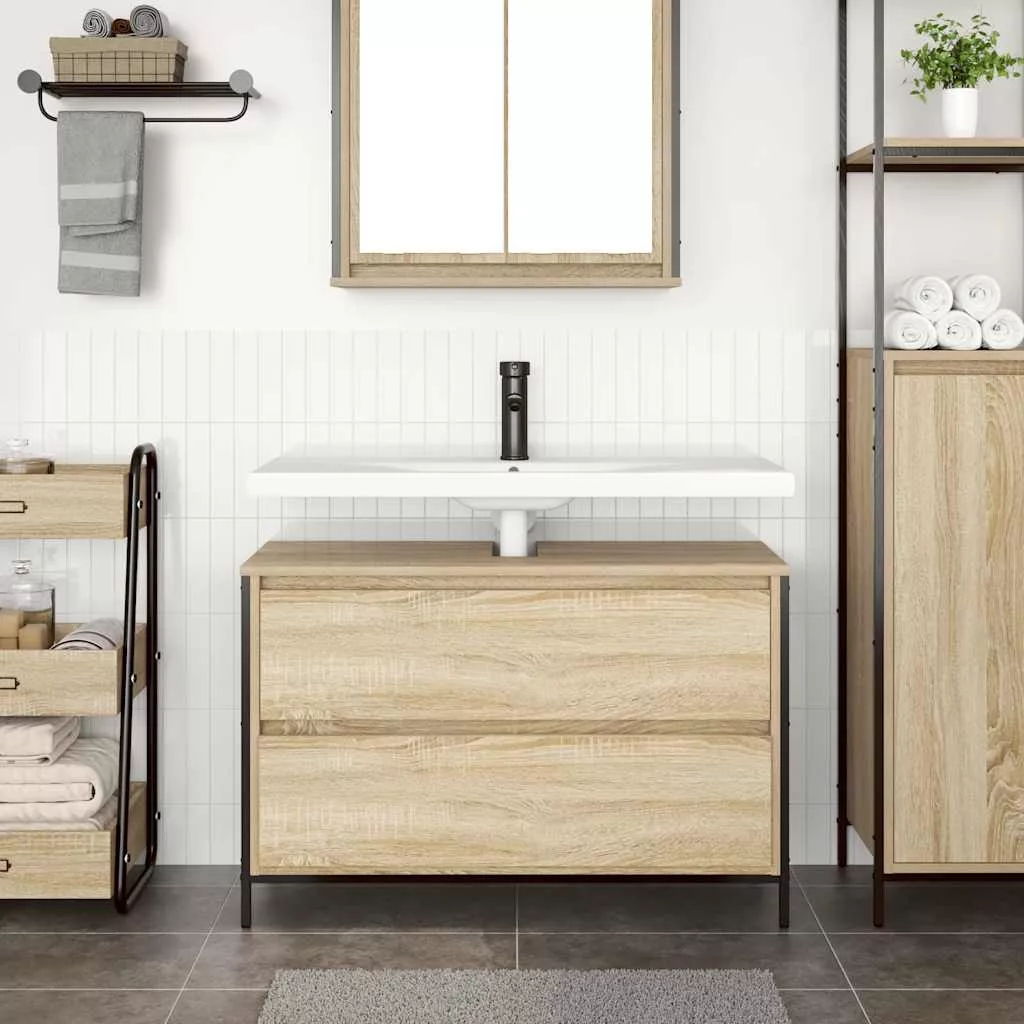 sonoma tölgy fürdőszobai mosdószekrény fiókokkal 90x34,5x60 cm