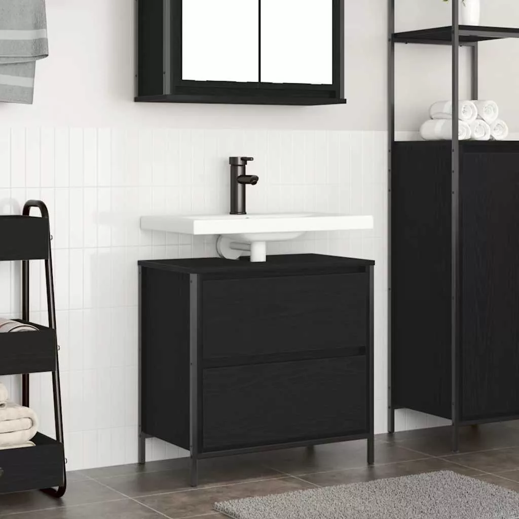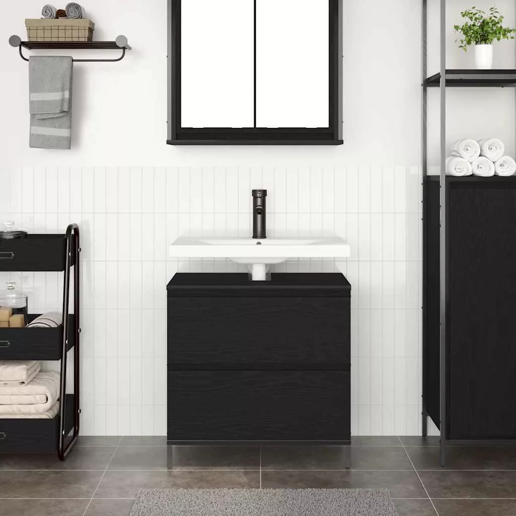 fekete tölgy fürdőszobai mosdószekrény fiókokkal 60x34,5x60 cm