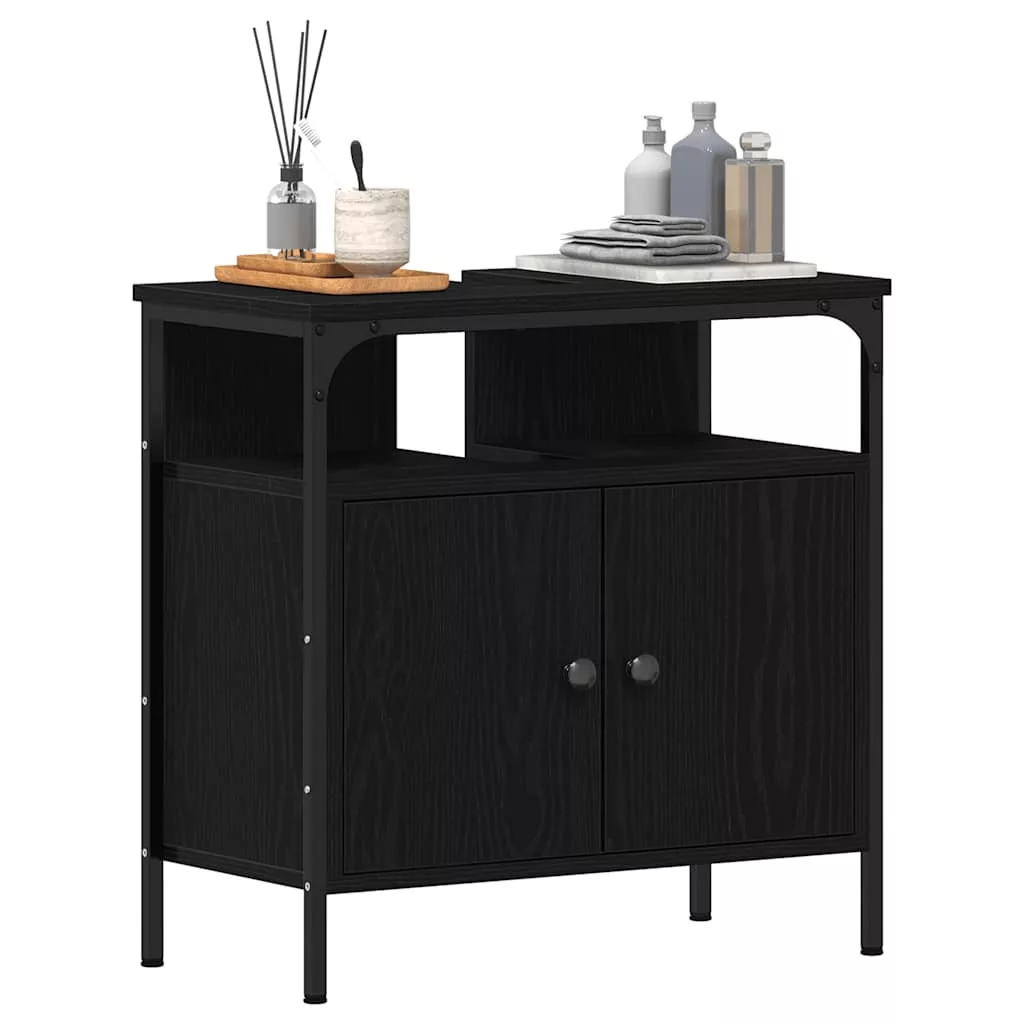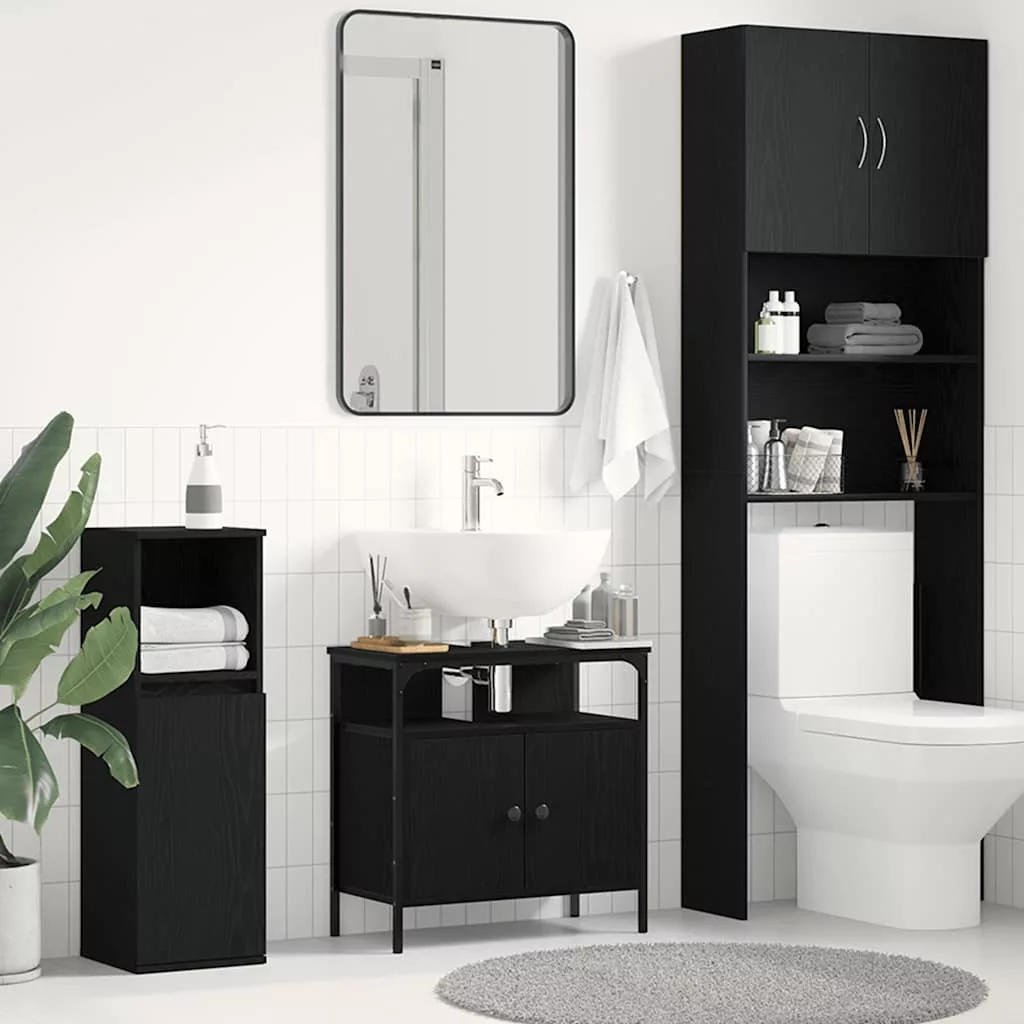 Ez a fürdőszobai mosdószekrény fürdőszobája nagyszerű kiegészítője lesz, rendezett és lenyűgöző megjelenést kölcsönözve neki! Stabil és tartós anyag: A szerelt fa tartós és stabil anyag sima felülettel, amely ellenáll a nedvességnek, a vetemedésnek és a hasadásnak, így megbízható választás különféle célokhoz.Bőséges tárolóhely: A fürdőszobai mosdószekrény bőséges helyet biztosít az alapvető pipere- és fürdőcikkek, például a szappanok, a sampon, a fogkrém stb. számára.Stabil és erős asztallap: A robusztus asztallap megbízható felületet kínál a legfontosabb dolgok kéznél tartásához, így tökéletes a mindennapi használatra. Akár hiúsági tárgyakat, akár dekorációs tárgyakat helyez el, tartóssága biztosítja, hogy könnyedén megbirkózzon a különböző feladatokkal.Könnyen karbantartható: Sima felületének köszönhetően a szekrény nedves ruhával könnyen tisztítható, és kevesebb gondozást igényel. Figyelem:A felborulás elkerülése érdekében ezt a terméket a mellékelt fali rögzítőeszközzel kell használni.