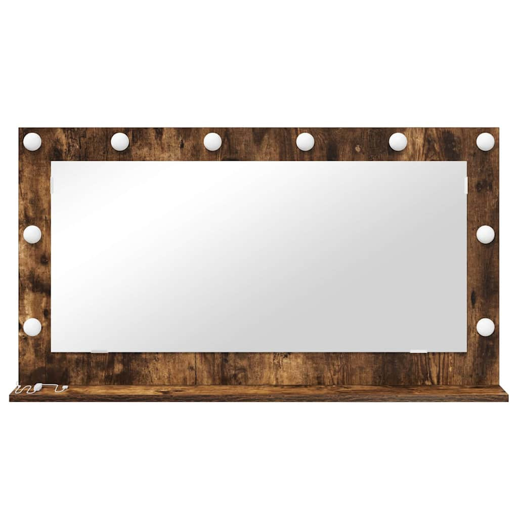 Toalett Tükör LED -es lámpákkal Füstölt tölgy 100 x 55 x 18 cm