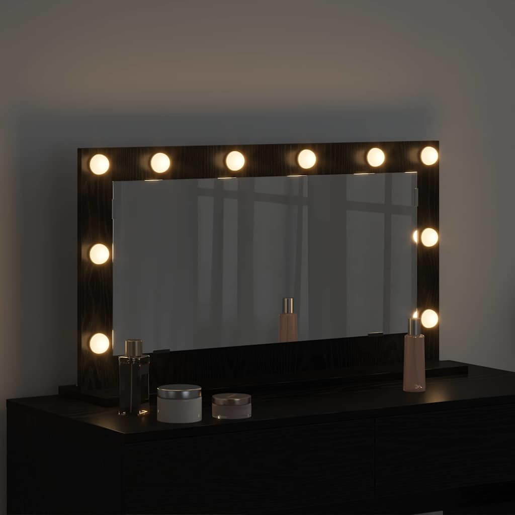 Toalett Tükör LED -es lámpákkal Fekete tölgy 80 x 45 x 18 cm