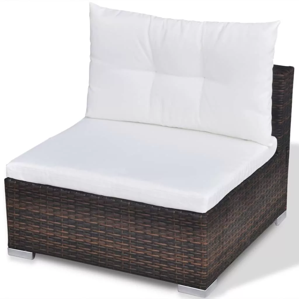 10-részes barna polyrattan kerti bútorszett párnákkal