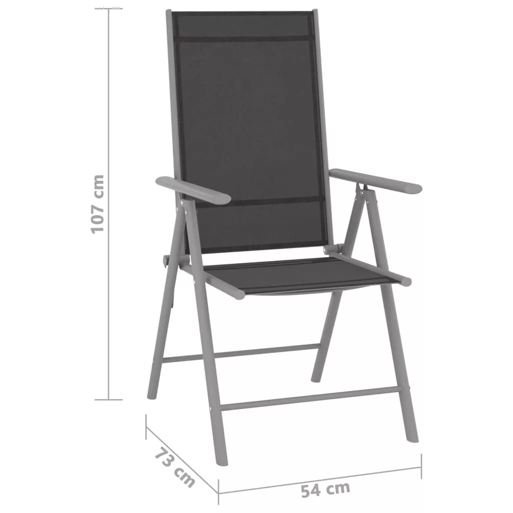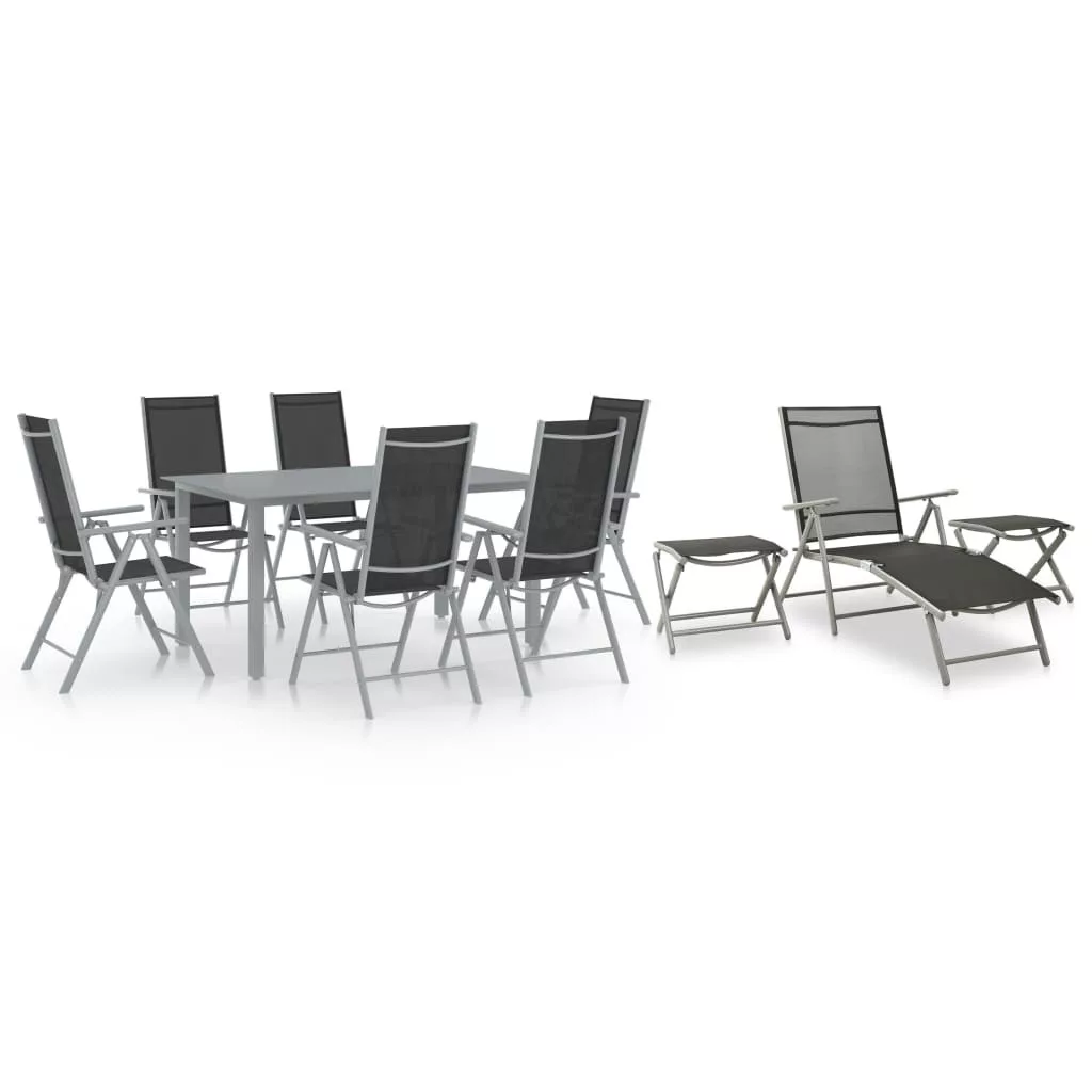 Ez a praktikus, mégis elegáns kerti étkezőszett tökéletes a pihenéshez, illetve a kertben vagy a teraszon történő étkezéshez. A porszórt alumíniumváznak köszönhetően a bútorgarnitúra nagyon masszív és tartós. A kerti székek puha tapintású textilén ülésekkel és háttámlákkal rendelkeznek. 7-féle helyzetbe állíthatóak, így mindig megtalálhatja a legkényelmesebb ülőpozíciót. A lábtámaszok további kényelmet nyújtanak, de akár dohányzóasztalnak is használhatja őket, melyen ételeit, italait helyezheti el. Az étkezőasztal üveg asztallappal van ellátva, mely nedves ruhával könnyen tisztítható. Megjegyzés: kültéri bútora élettartamának meghosszabbítása érdekében javasoljuk, hogy tisztítsa rendszeresen, és ne hagyja feleslegesen a szabadban, védelem nélkül.Tisztítás: használjon enyhe szappanoldatot.Tárolás: Ha lehetséges, tárolja zárt, hűvös, száraz helyen. Ha a terméket a szabadban tárolja, védje vízálló burkolattal. Eső vagy havazás után törölje le és szárítsa fel a felesleges vizet vagy havat a sima felületekről. Hagyjon elegendő légkeringést a nedvességből eredő károk elkerülése érdekében. Maximum 110 kg ülésenként.