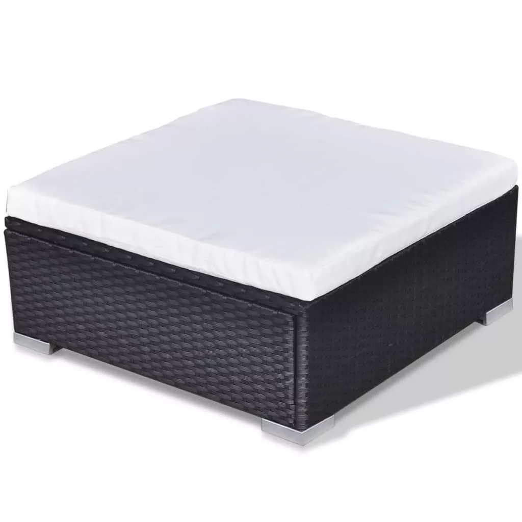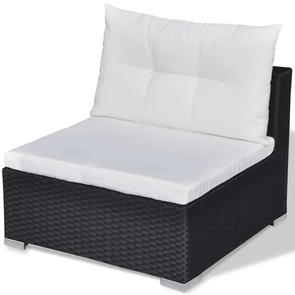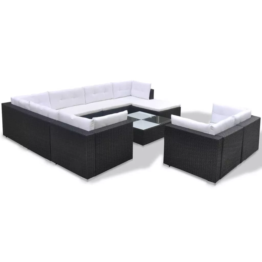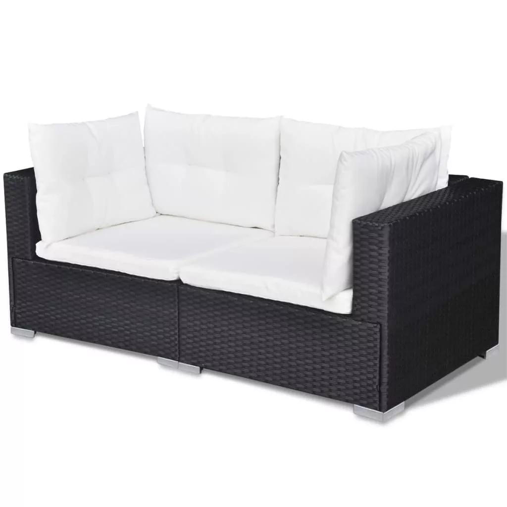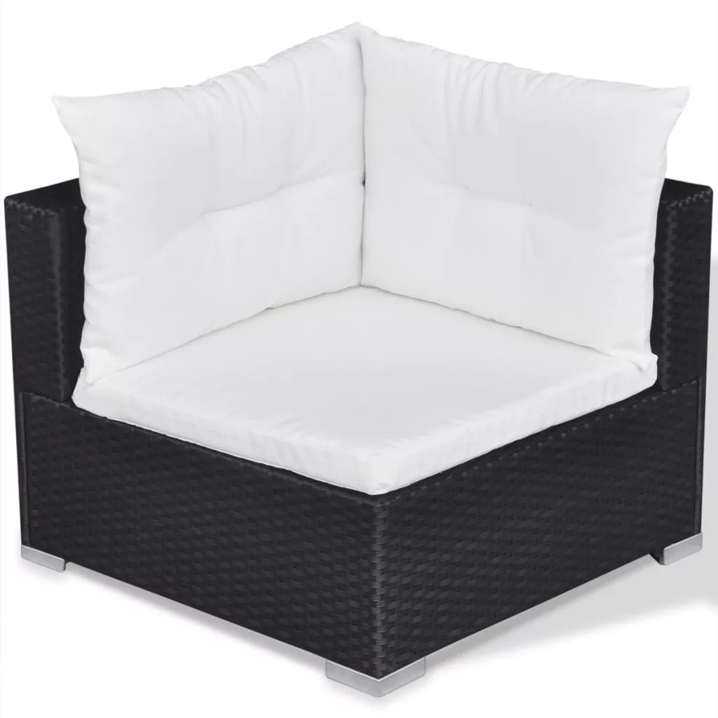 10-részes fekete polyrattan kerti bútorszett párnákkal