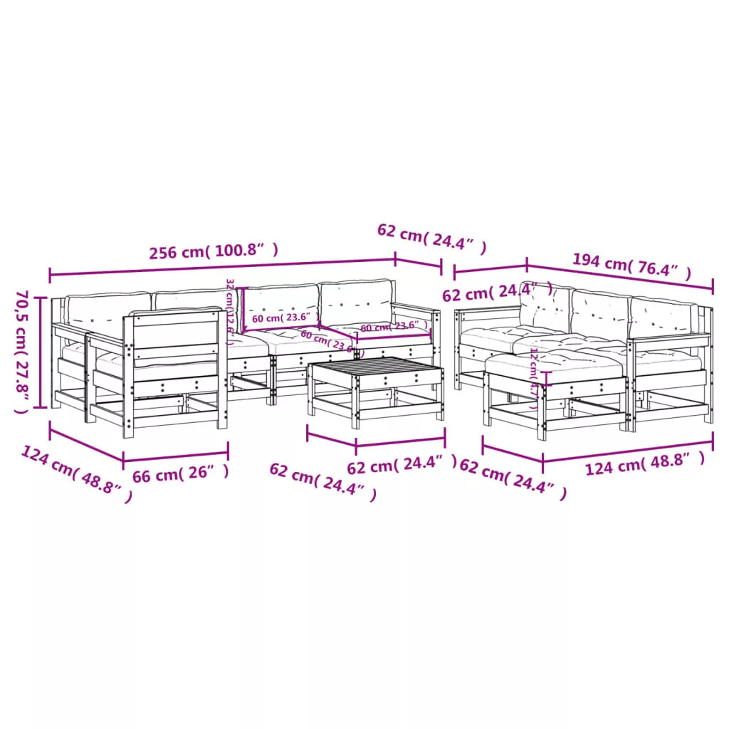 Ez a rácsos kialakítással és puha párnával rendelkező fa kerti társalgószett kertje, udvara vagy terasza remek kiegészítője lesz, ahol családtagjai vagy barátai körében társaloghat. Impregnált fenyőfa: A tömör fenyőfa egy gyönyörű és természetes anyag. A fenyőfa egyenes erezetű, a csomók pedig jellegzetes, rusztikus megjelenést biztosítanak az anyagnak. Az impregnálás egy tartósítási eljárás, amely egy zárt, túlnyomásos berendezés használatával történik. A nyomáskezelés növeli a korhadással és a vízzel szembeni ellenállást.Kényelmes ülésélmény: A háttámla és a kartámasz extra kényelmet biztosít a kerti bútorgarnitúra számára. Ráadásul a vastagon bélelt párnák is kényelmet nyújtanak ülés közben.Moduláris kialakítás: A kanapészett rugalmasan és könnyen mozgatható. Kombinálhatja más moduláris elemekkel, hogy létrehozza saját személyes kerti pihenőgarnitúráját! Jó tudni:A kültéri bútor szépségének megőrzése érdekében javasoljuk, hogy vízálló huzattal fedje be. Maximum 110 kg ülésenként.