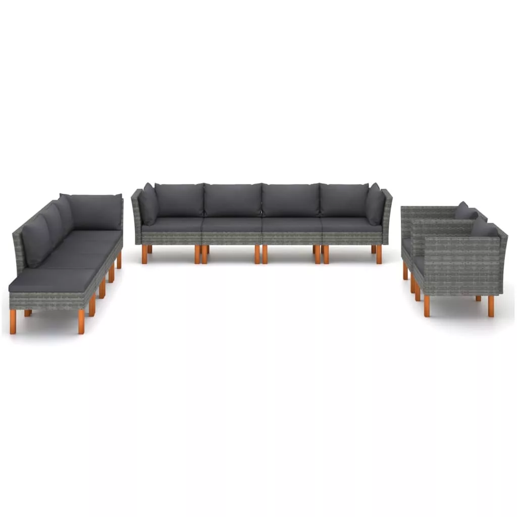 Ez a kerti bútorgarnitúra remek választás pihenéshez, a jó idő élvezetéhez, szundításhoz, vagy a családtagjaival és barátaival való beszélgetéshez. A polietilén rattan borítású porszórt acélvázzal ellátott kerti kanapészett masszív és könnyen tisztítható. A tömör eukaliptuszfa lábak tovább növelik szilárdságát. A párnák extra kényelmet biztosítanak a pihenéshez. A cipzáras párnahuzatok levehetőek és moshatóak. A könnyű polietilén rattan kialakításnak köszönhetően könnyen mozgatható. Figyelem: kültéri bútora élettartamának meghosszabbítása érdekében javasoljuk, hogy tisztítsa rendszeresen, és ne hagyja feleslegesen a szabadban, védelem nélkül.Tisztítás: használjon enyhe szappanoldatot.Tárolás: Ha lehetséges, tárolja zárt, hűvös, száraz helyen. Ha a terméket a szabadban tárolja, védje vízálló burkolattal. Eső vagy havazás után törölje le és szárítsa fel a felesleges vizet vagy havat a sík felületekről. Hagyjon elegendő légkeringést a nedvességből eredő károk elkerülése érdekében.
