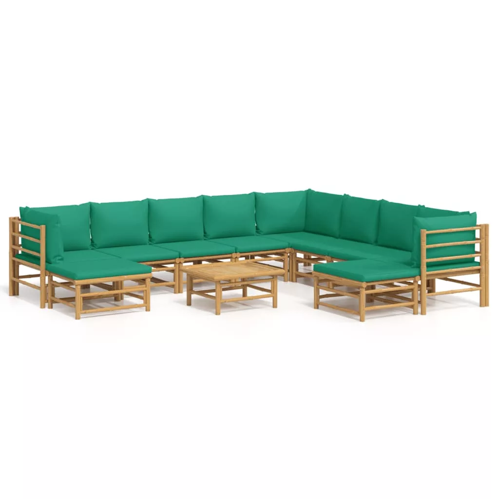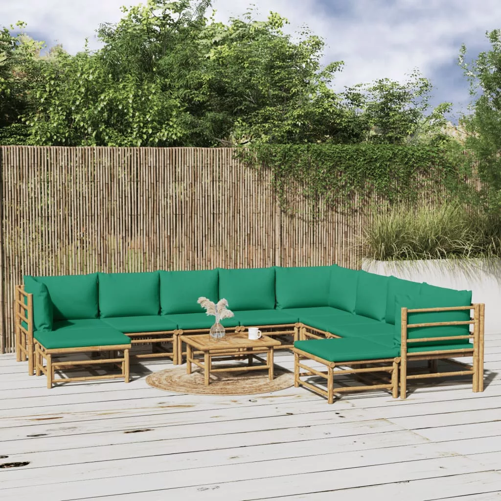 vidaXL 11 részes bambusz kerti ülőgarnitúra zöld párnákkal