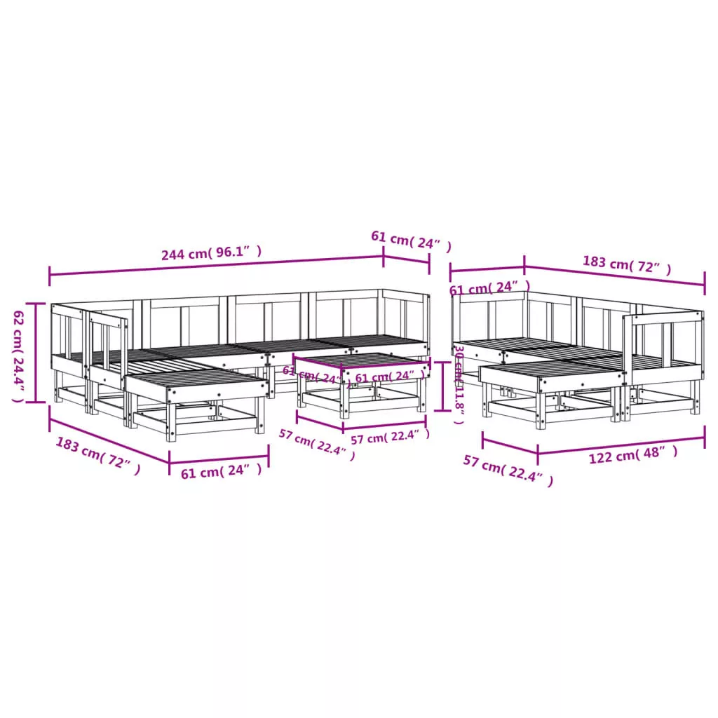 Ez a rácsos kialakítással rendelkező, fa kerti társalgószett kertje, udvara vagy terasza remek kiegészítője lesz, ahol családtagjai vagy barátai körében társaloghat. Impregnált fenyőfa: A tömör fenyőfa egy gyönyörű és természetes anyag. A fenyőfa egyenes erezetű, a csomók pedig jellegzetes, rusztikus megjelenést biztosítanak az anyagnak. Az impregnálás egy tartósítási eljárás, amely egy zárt, túlnyomásos berendezés használatával történik. A nyomáskezelés növeli a korhadással és a vízzel szembeni ellenállást.Kényelmes ülés: A háttámla még nagyobb kényelmet biztosít a kültéri kanapé számára.Moduláris kialakítás: A kanapészett rugalmasan és könnyen mozgatható. Kombinálhatja más moduláris elemekkel, hogy létrehozza saját személyes kerti pihenőgarnitúráját! Jó tudni:A kültéri bútor szépségének megőrzése érdekében javasoljuk, hogy vízálló huzattal fedje be.A párnákat a küldemény nem tartalmazza.