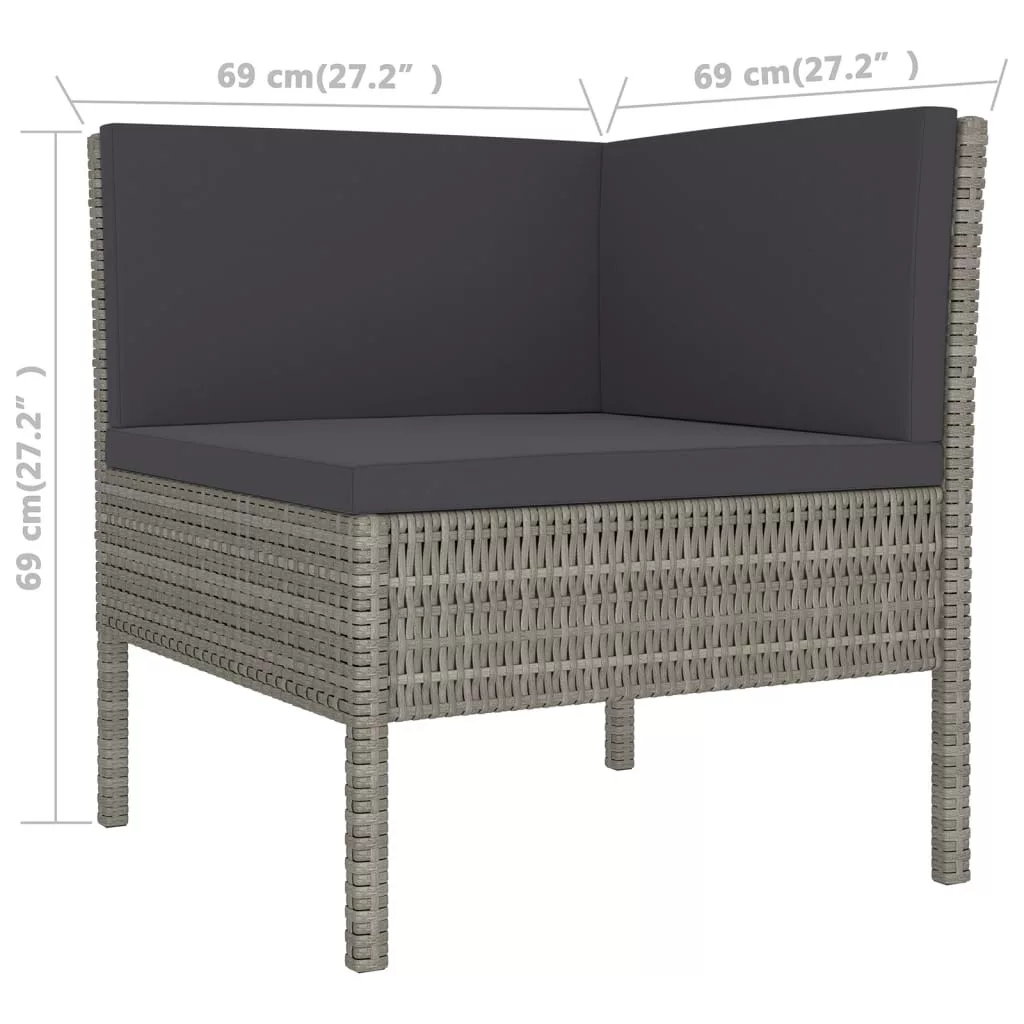 Teremtse meg azt a mutatós pihenőhelyet, melyre mindig is vágyott! Élvezze a nyugodt, napsütötte délutánt vagy a nyári estét családja és barátai körében ebben az elemes bútorgarnitúrában! Az időjárásálló polietilén rattannak köszönhetően ez a kültéri ülőgarnitúra könnyen tisztítható és kezelhető. A porszórt acél váz stabillá és masszívvá teszi a kerti bútorszettet. A vastag és puha párnákkal ellátott kerti ülőgarnitúra maximális kényelmet biztosít. A könnyen tisztítható poliészter huzatok levehetőek és moshatóak. Emellett a könnyű súlynak és az elemes kialakításnak köszönhetően a garnitúrát könnyedén mozgathatja a ház körül. Figyelem: Kültéri bútora élettartamának meghosszabbítása érdekében javasoljuk, hogy tisztítsa rendszeresen, és ne hagyja feleslegesen a szabadban, védelem nélkül.Tisztítás: Használjon enyhe szappanoldatotTárolás: Ha lehetséges, tárolja zárt, hűvös, száraz helyen. Ha a terméket a szabadban tárolja, védje vízálló burkolattal. Eső vagy havazás után törölje le és szárítsa fel a felesleges vizet vagy havat a sík felületekről. Hagyjon elegendő légkeringést a nedvességből eredő károk elkerülése érdekében.
