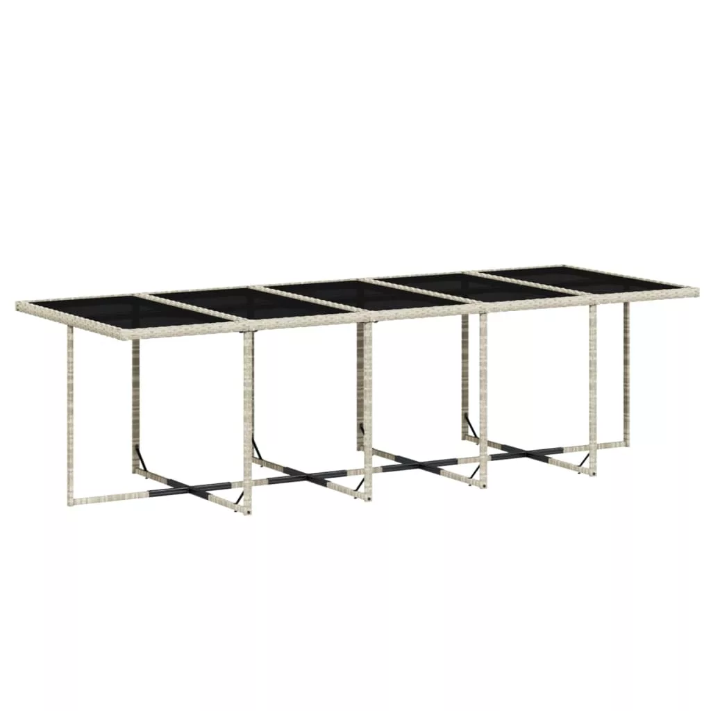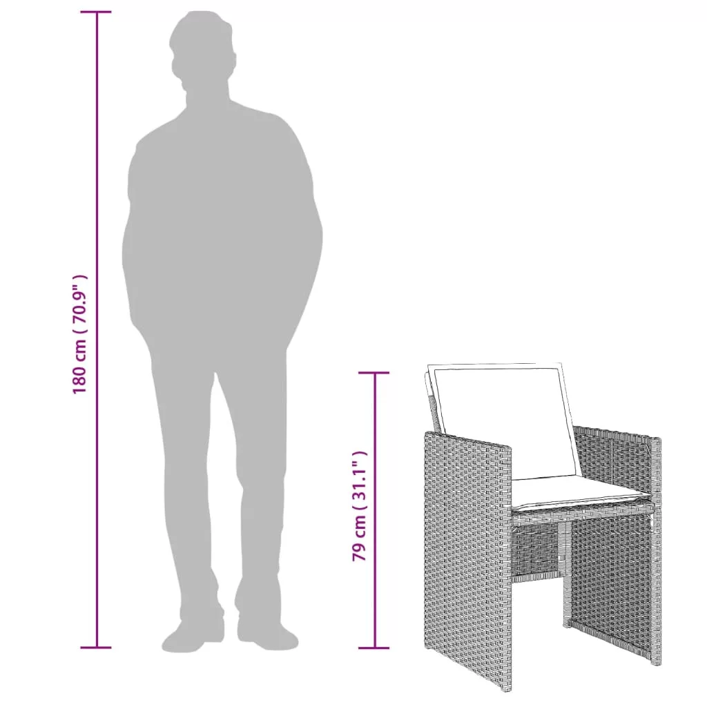 Ez a kerti étkezőgarnitúra nagyszerű választás a szabadban való étkezéshez, vagy csak pihenéshez a kertben, az udvaron vagy a teraszon. Tartós anyag: A PE rattan, más néven polyrattan, egy erős, kevés karbantartást igénylő szintetikus anyag, amely úgy néz ki, mint a természetes rattan. Könnyű, könnyen tisztítható, tartóssága és időjárásálló tulajdonságai miatt gyakran használják kültéri bútorok készítéséhez.Kompakt tárolás: Ezeknek a székeknek a háttámlája lehajtható, így könnyen tárolhatók az asztal alatt. Összecsukva szépen elférnek az asztal alatt, helytakarékos kockaformát alkotva. Kényelmes ülőélmény: Ez a vastagon bélelt párnákkal kiegészített kültéri bútor kényelmes ülőélményt kínál.Levehető és mosható huzat: Ezek az ülőpárnák levehető huzattal rendelkeznek az egyszerű mosás és karbantartás érdekében.Üveg asztallap: A kültéri asztallap erős és tartós edzett üvegből készült, így nedves ruhával könnyen tisztítható, és egy csipetnyi eleganciát kölcsönöz a kültéri környezetnek. Jó tudni: A kültéri bútor szépségének megőrzése érdekében javasoljuk, hogy vízálló huzattal fedje be. Maximum 110 kg ülésenként.