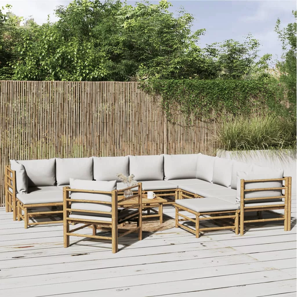 vidaXL 12 részes bambusz kerti ülőgarnitúra világosszürke párnákkal