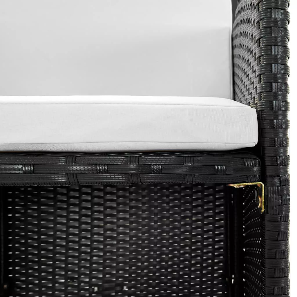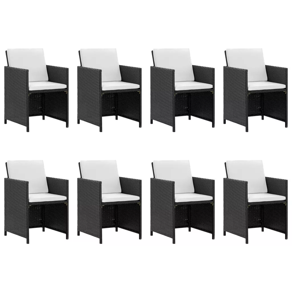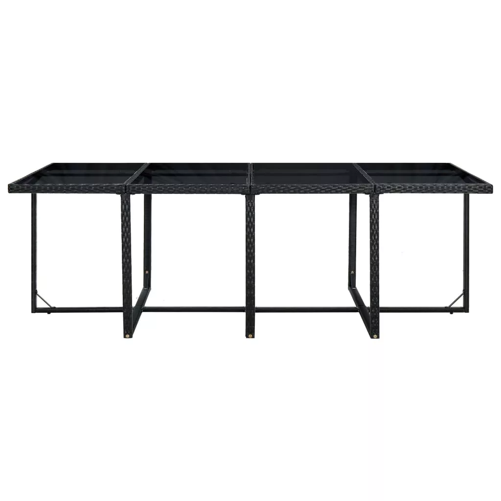 Stílusos rattan kerti bútorgarnitúránk azonnal kertje vagy terasza gyöngyszeme lesz! Ez a rattan étkezőszett elegáns kialakításával tökéletes választás kerti vacsorákhoz vagy pihenéshez. A porszórással felületkezelt acél váznak köszönhetően az asztal, a székek és a puffok is erősek és strapabírók, míg pehelysúlyú szerkezetüknek hála könnyen mozgathatók. Időjárás- és vízálló PE rattan anyagának köszönhetően az étkezőszett könnyedén tisztítható. Az asztal üveglapja egy nedves ronggyal szintén egyszerűen tisztítható. A vastagon párnázott és puha ülések és háttámlák is rendkívül kényelmesek, emellett pedig vízlepergető poliészterből készültek. A huzatok cipzár segítségével leszedhetőek és moshatóak. A szett 1 asztalt, 8 széket, 4 puffot és 20 párnát tartalmaz. Megjegyzés: Eső, hó vagy fagy esetén javasoljuk, hogy a garnitúrát takarja le.