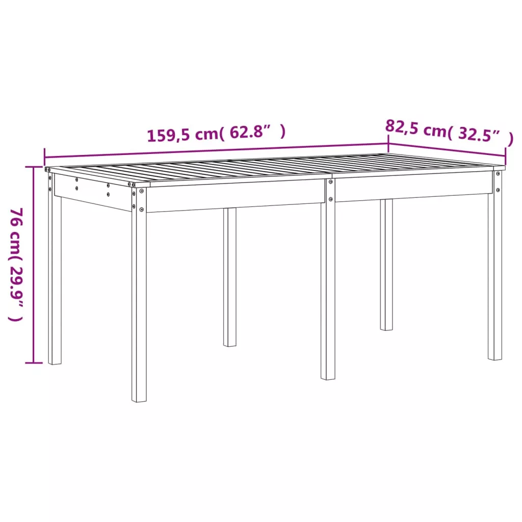 • Kerti asztal mérete: 159,5 x 82,5 x 76 cm (Ho x Szé x Ma)