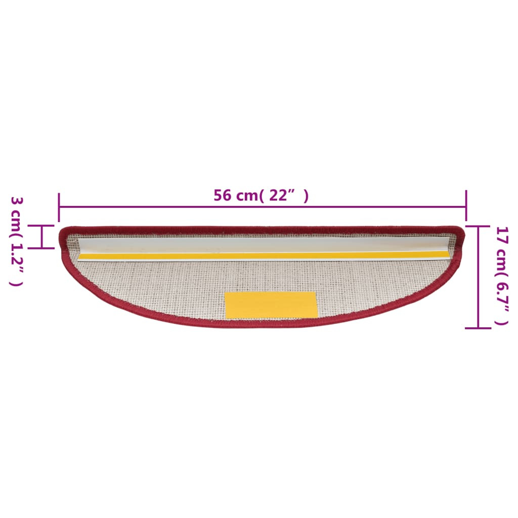 15 db lépcsőszőnyeg 56 x 17 x 3 cm bordó félkör alakú