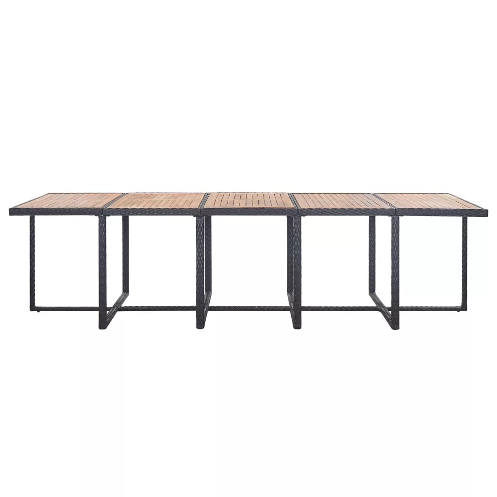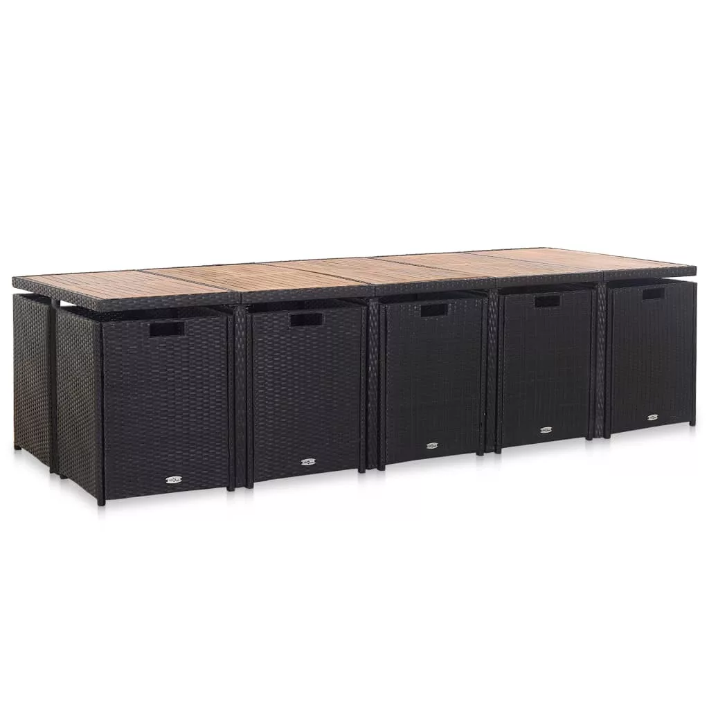 Ez az acélvázas, stílusos dizájnnal rendelkező rattan étkezőszett tökéletes választás kültere számára. Kényelmes ülőalkalmatosságot biztosít egy családi vacsorához, olvasáshoz vagy pihenéshez. Az acélváz hozzájárul a szett robusztusságához, míg az időjárás- és vízálló PE rattan miatt könnyen tisztítható a garnitúra. Mivel a szerkezetük könnyű, ezért a bútordarabok könnyen mozgathatók. A vastag, vízálló poliészterből készült levehető ülő- és hátpárnák kétségkívül kiváló kényelmet biztosítanak. A további helytakarékosság érdekében használaton kívül a zsámolyok a székek alá tolhatóak és ezek együtt az asztal alá tolva tárolhatóak. A szállítmány 1 falapos asztalt, 10 rattan széket, 4 zsámolyt és 24 levehető párnát tartalmaz. Figyelem: Ahhoz, hogy a garnitúra minél tovább szolgálhassa Önt, eső, hó vagy fagy esetén, kérjük takarja le.