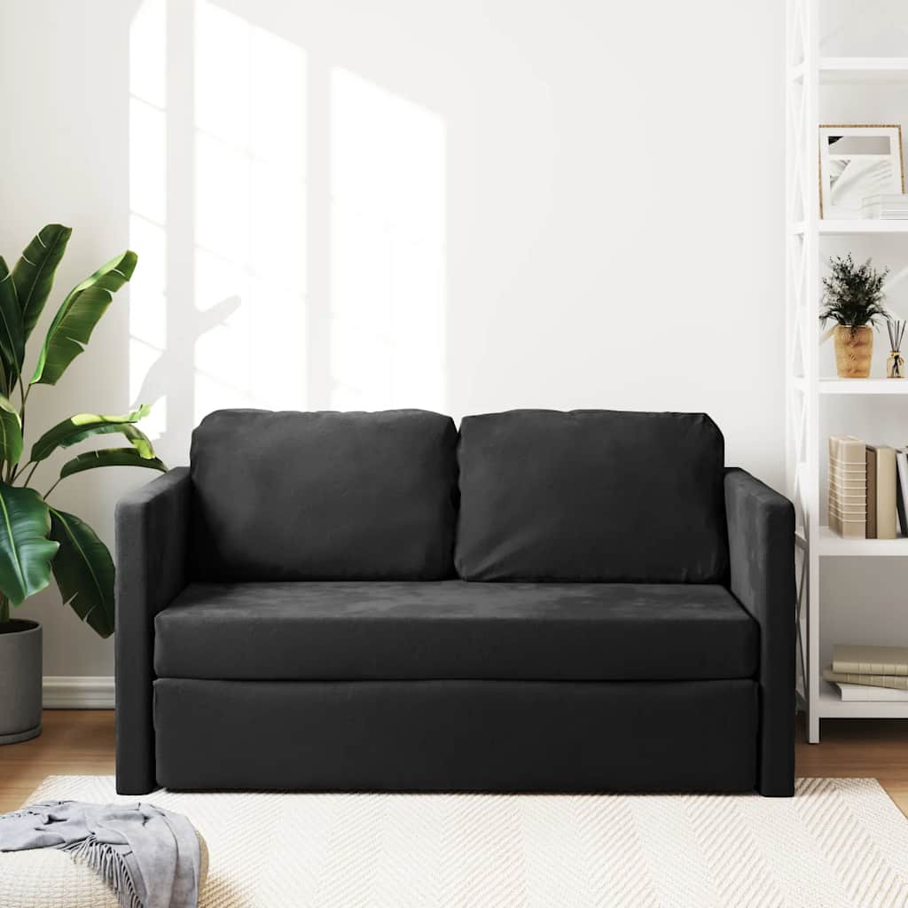 2 az 1-ben fekete bársony padlókanapéágy 122 x 204 x 55 cm